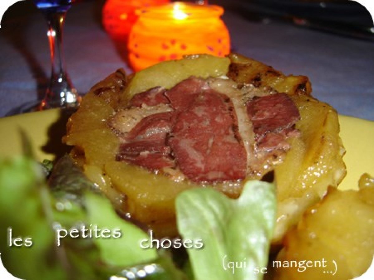 Beurrez légèrement les moules. - Déposez quatre tranches de magret dans chaque moule.