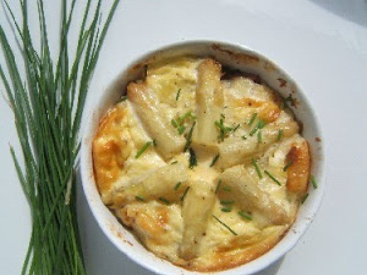 Clafoutis aux asperges blanches PrécédentSuivant Entréefacile55 min655 Kcal Envoyer cette recette à un ami Imprimer cette page Poser une question à l'auteur Publier votre photo de cette recette Ingrédients 4 1 kg d'asperges blanches 2 pieds de cive 200 g de lardons fins 2 oeufs 50 cl de crème liquide 20 g de beurre noix de muscade sel et poivre du moulin