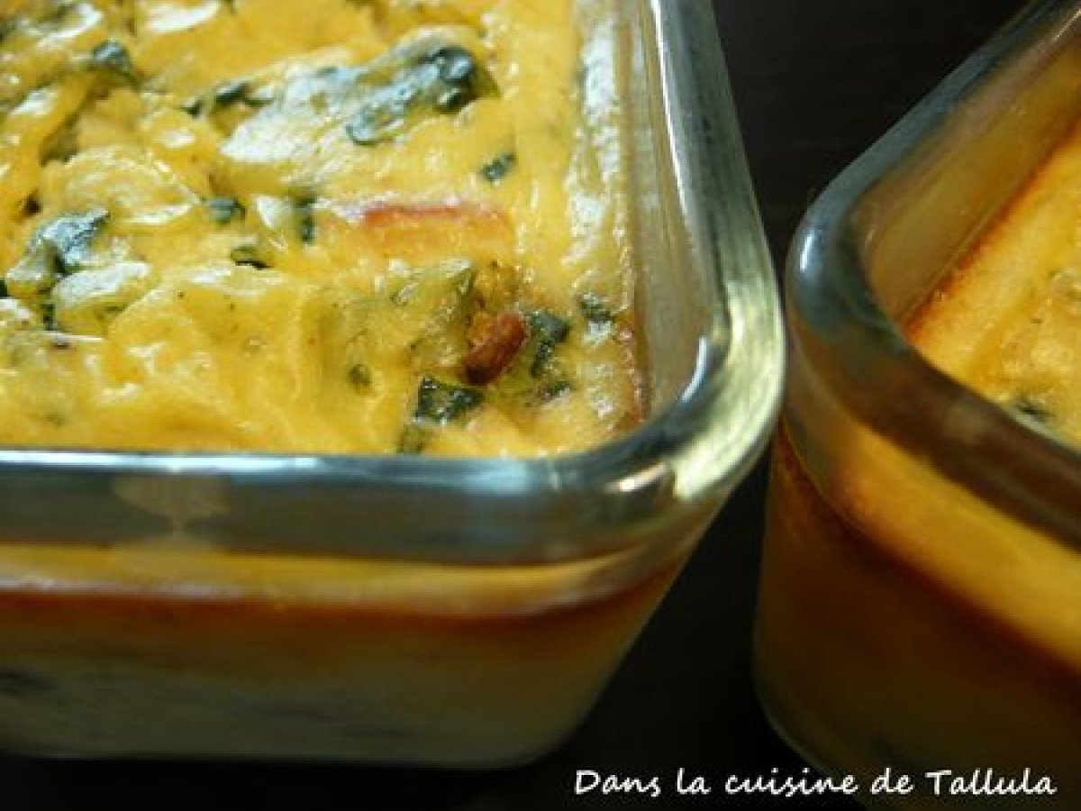 Clafoutis épinards et truite fumée votez maintenant PrécédentSuivant Entréefacile54 min Envoyer cette recette à un ami Imprimer cette page Poser une question à l'auteur Publier votre photo de cette recette Ingrédients 4 300 g d'épinards frais 2 tranches de truite fumée (au bois de hêtre) 200 g de ricotta 170 g de lait concentré non sucré 2 oeufs 50 g de gruyère râpé 25 g de farine poivre piment d'Espelette muscade sel