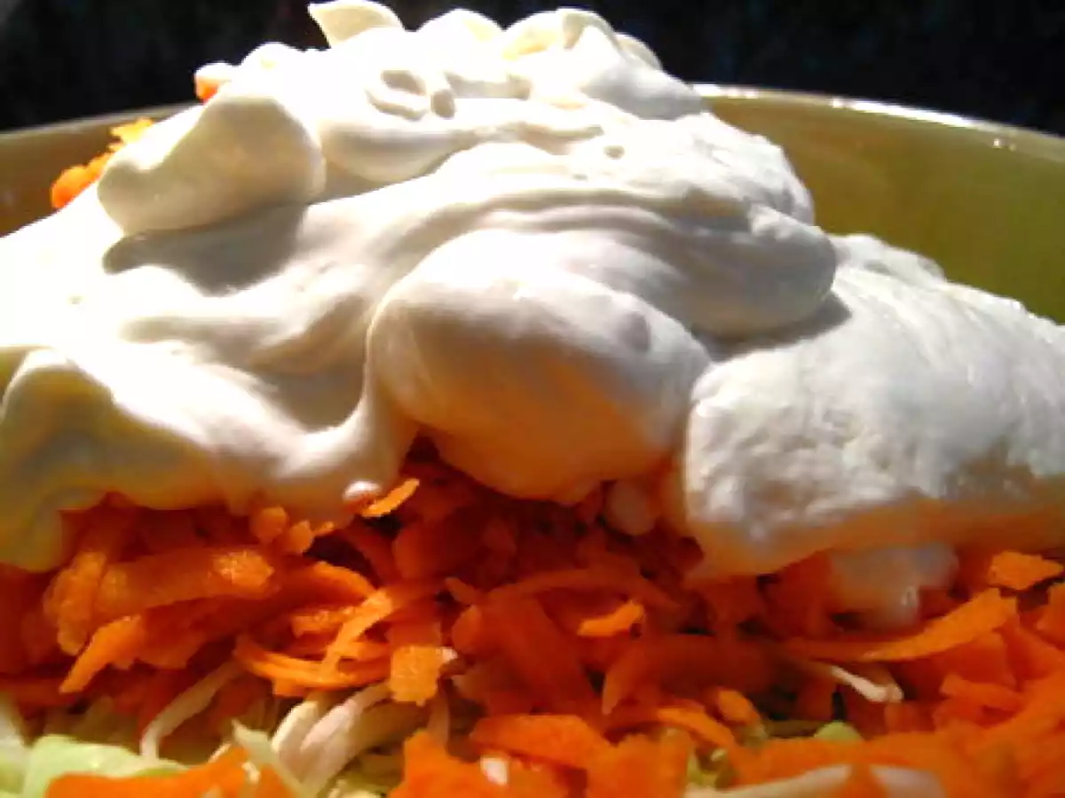 Cole slaw et mayonnaise sans cholestérol : au petit suisse Entréefacile10 min Envoyer cette recette à un ami Imprimer cette page Poser une question à l'auteur Publier votre photo de cette recette Ingrédients 3 quelques chou lisse d'été, chou blanc d'hiver, chou rave au choix, râpé quelques carottes, râpées quelques mayo au petit suisse quelques herbes fraîches ciselées (persil, ciboulette... facultatif) sel, poivre Pour la mayo au petit suisse (recette de base) 1 csoupe de petit suisse (pas tout à fait un petit suisse) 1 grosse ccafé moutarde 1 blanc d'oeuf sel, poivre 200ml huile végétale neutre (ou un mélange de votre choix) 1/2 jus de citron ou 1 csoupe vinaigre de cidre