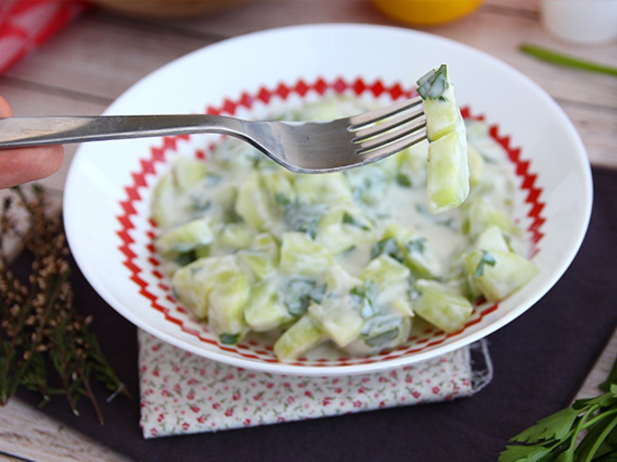 Embellissez votre salade de concombre avec une sauce au yaourt ! Facile, rapide, onctueuse et savoureuse, vous avez ici la preuve que les recettes simples sont très souvent les meilleures ! Une salade qui sera appréciée par toute la famille :-)