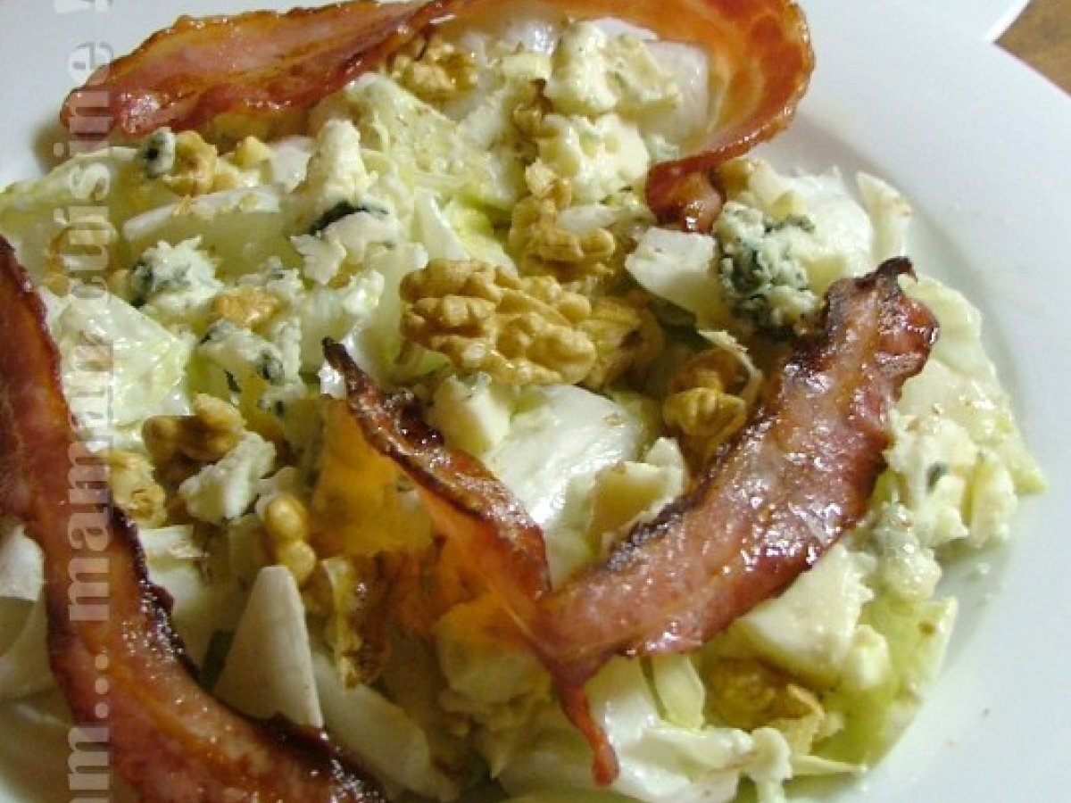 Copieuse salade d'hiver : endives, roquefort, noix & lard croustillant Entréefacile14 min584 Kcal Envoyer cette recette à un ami Imprimer cette page Poser une question à l'auteur Publier votre photo de cette recette Ingrédients 4 1 kg d'endives 150 g de roquefort 200 g de fromage blanc 2 cuillères à soupe d'huile neutre (type tournesol) 1 cuillère à soupe d'huile de noix 8 tranches fines de lard fumé 70 g de cerneaux de noix sel poivre