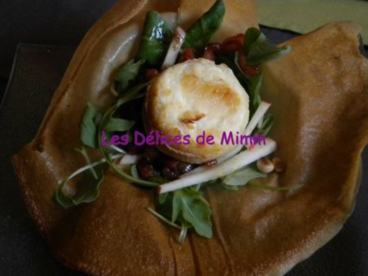 Corolle au crottin de chavignol PrécédentSuivant Entréefacile20 min343 Kcal Envoyer cette recette à un ami Imprimer cette page Poser une question à l'auteur Publier votre photo de cette recette Ingrédients 4 4 feuilles de brick 2 crottins de Chavignol 100 g de lardons fumés 1 pomme mesclun 2 cuillères à soupe de pignons de pin 2 cuillères à café de miel 2 cuillères à soupe de vinaigre balsamique 2 cuillères à soupe de beurre fondu