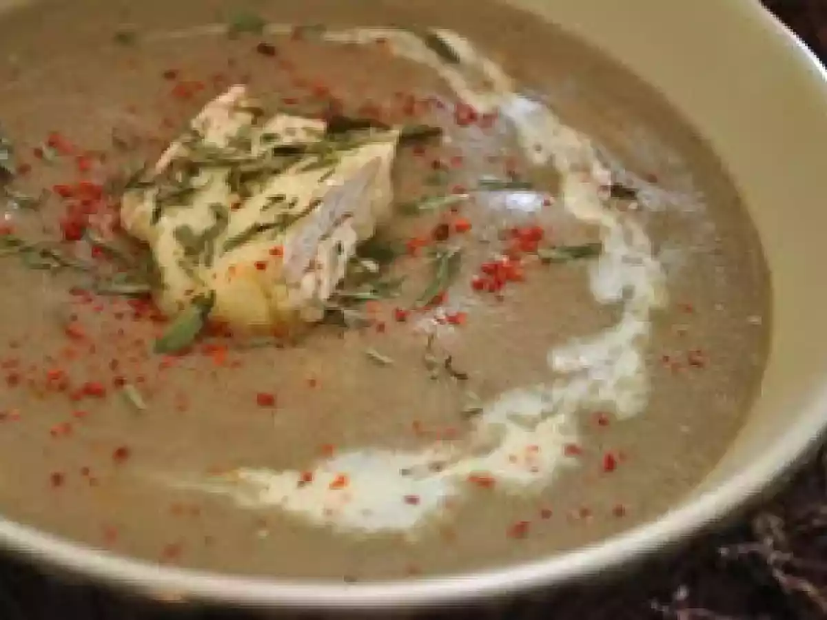 Crème de champignons au brie PrécédentSuivant Entréefacile45 min Envoyer cette recette à un ami Imprimer cette page Poser une question à l'auteur Publier votre photo de cette recette Ingrédients 6 1 noix de beurre 1 oignon hahcé finement 2 gousses d'ail hachées finement 500 g de champignons de Paris émincés 1 pomme de terre pelée et coupées en dés 500 ml de bouillon de poulet 75 ml crème 35% 150 g de brie sans la croûte Sel et Poivre Pour la décoration : Piment d'espelette et estragon frais haché une tranche de Riopelle