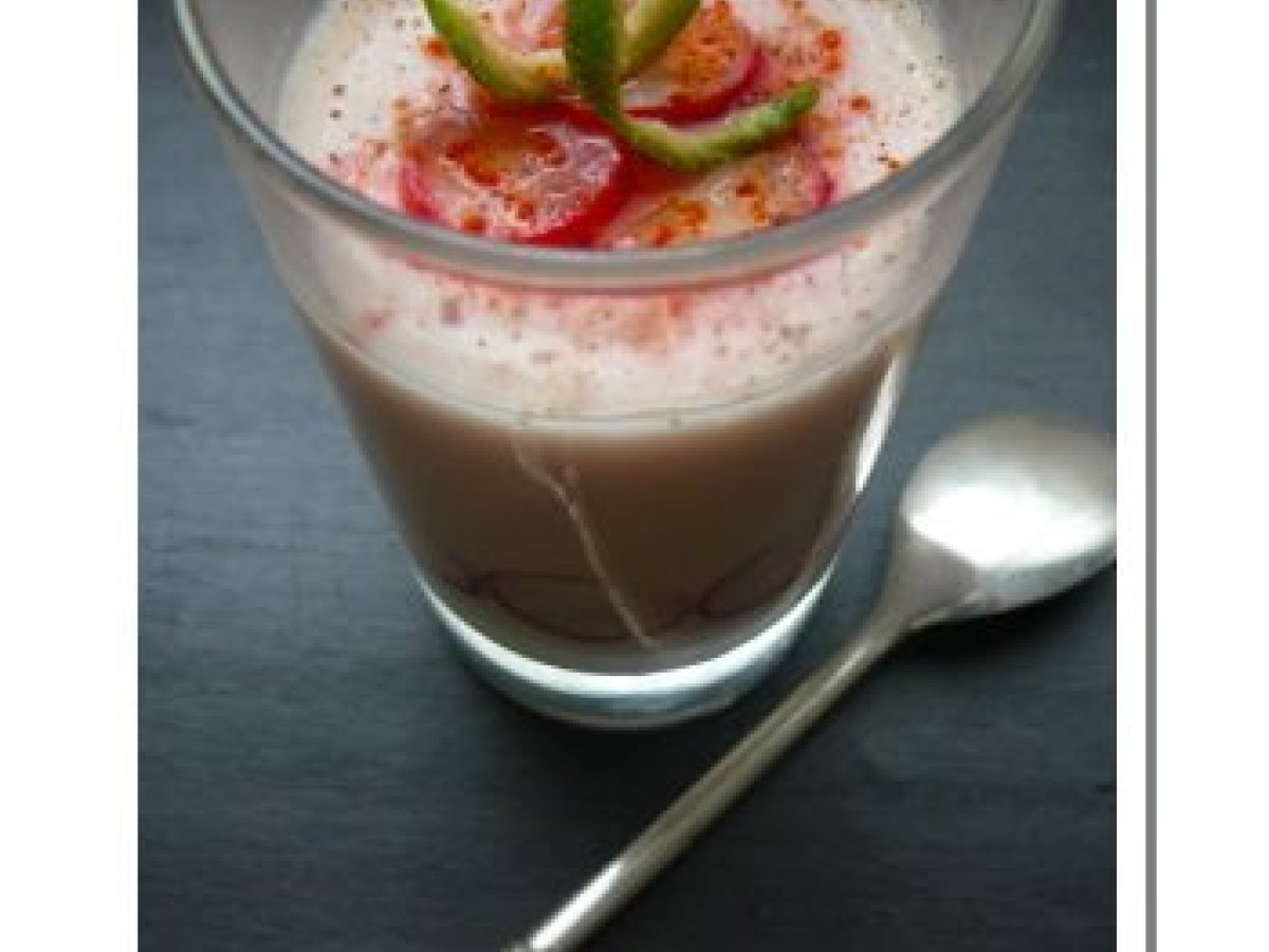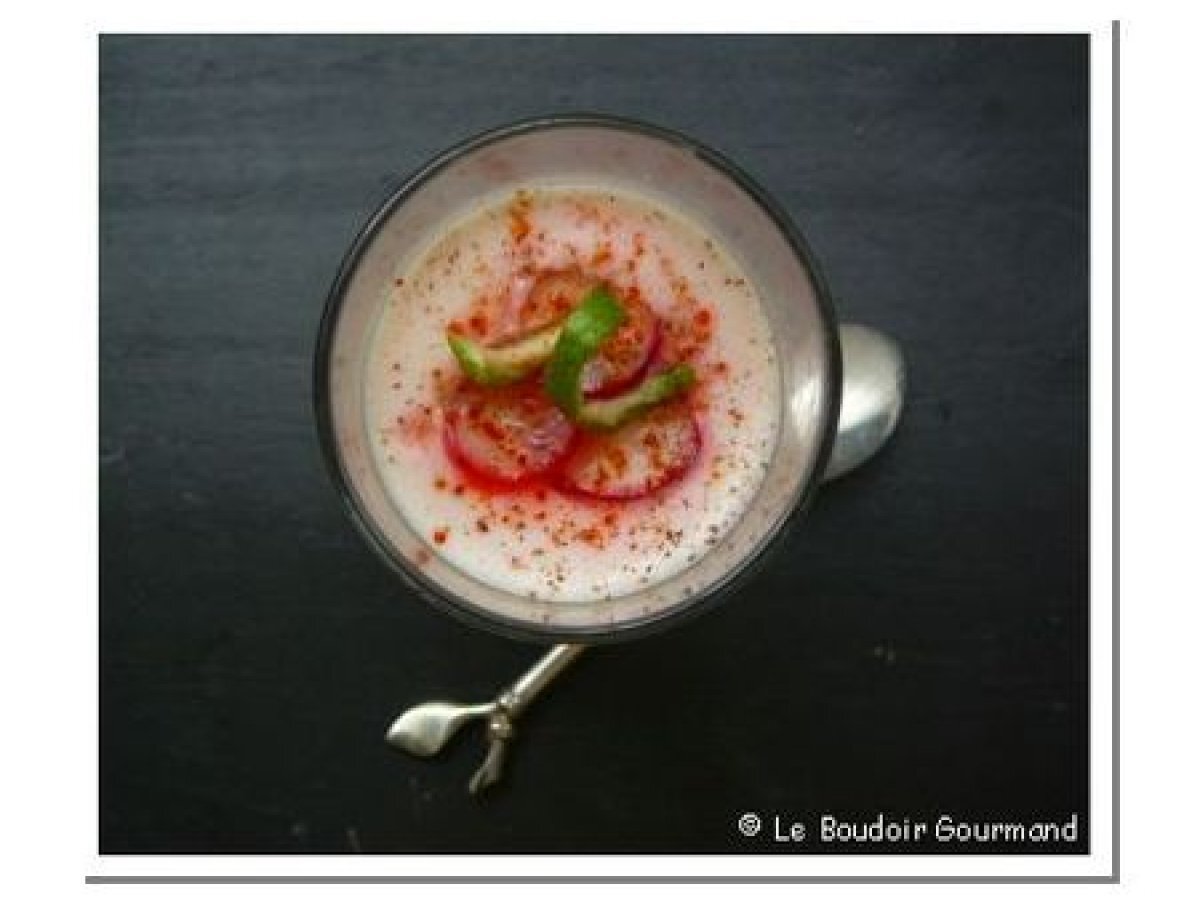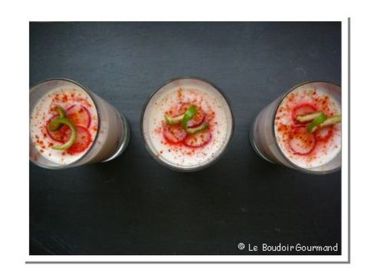 Une jolie petite verrine toute rose composée de chèvre frais, de crème de radis roses et de citron vert.