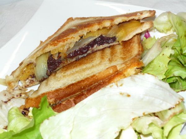 Croque-monsieur boudin-pomme-oignon-camembert Entréefacile25 min670 Kcal Envoyer cette recette à un ami Imprimer cette page Poser une question à l'auteur Publier votre photo de cette recette Ingrédients 2 4 tranches de pain de mie 1 oignon 1 pomme 10 cm de boudin aux oignons piment d'espelette camembert un peu de beurre Coût estimé: 3.42Euros€ (1.71€/part)