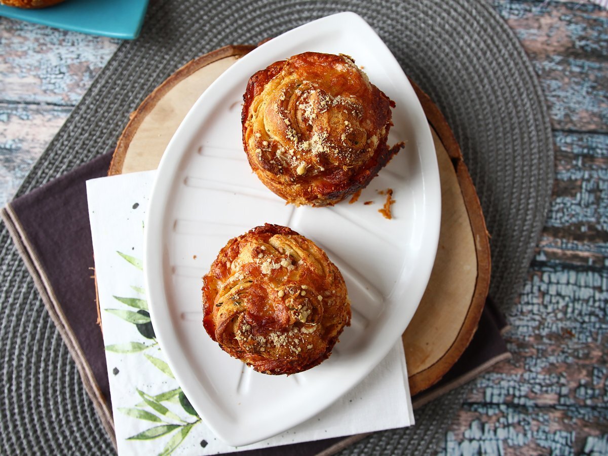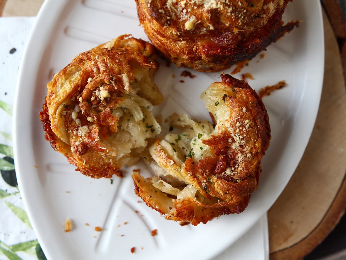 Cruffins, la combinaison d'un croissant et d'un muffin, ici salés au parmesan et mozzarella