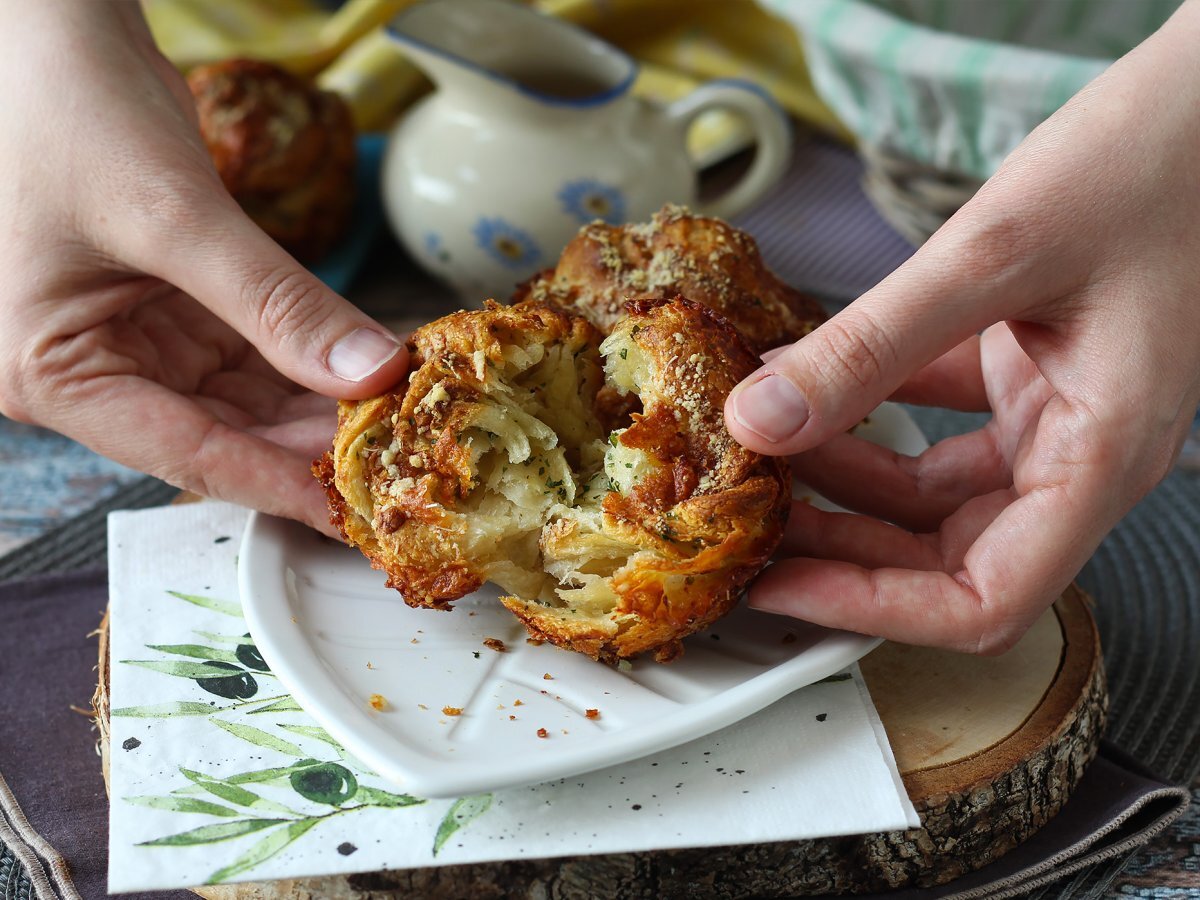 Imaginez un croissant feuilleté, un pain à l’ail bien parfumé. Mélangez le tout et vous obtenez... des Cruffins salés! Ici, on les garnis avec une généreuse dose de parmesan et de mozzarella fondante, pour un résultat ultra croustillant à l’extérieur et moelleux à cœur. Parfaits pour un apéro qui change et qui séduira tous les invités! Testez-les vite, vous allez craquer ;)