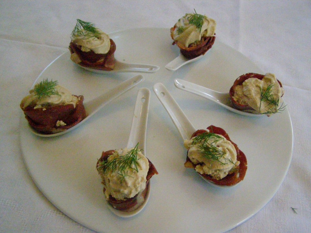 Cuillères de chantilly de foie gras et de magret de canard fumé