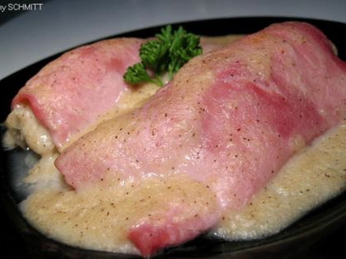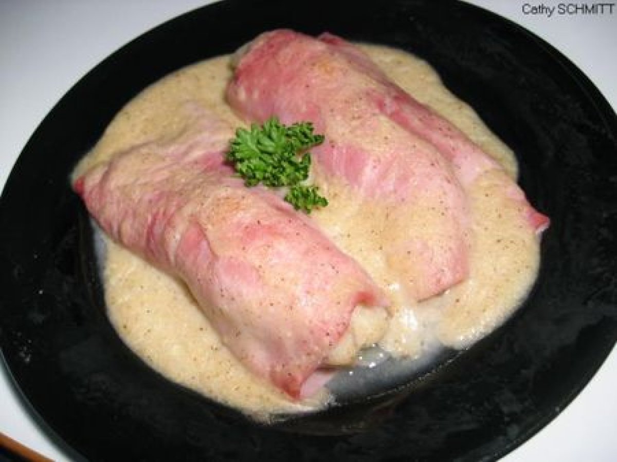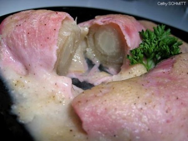Endives au jambon diététiques. Ce titre très simple se cache une subtilité : la sauce béchamel qui entre dans la composition de ce plat n'est pas réalisée selon les principes de la recette traditionnelle.