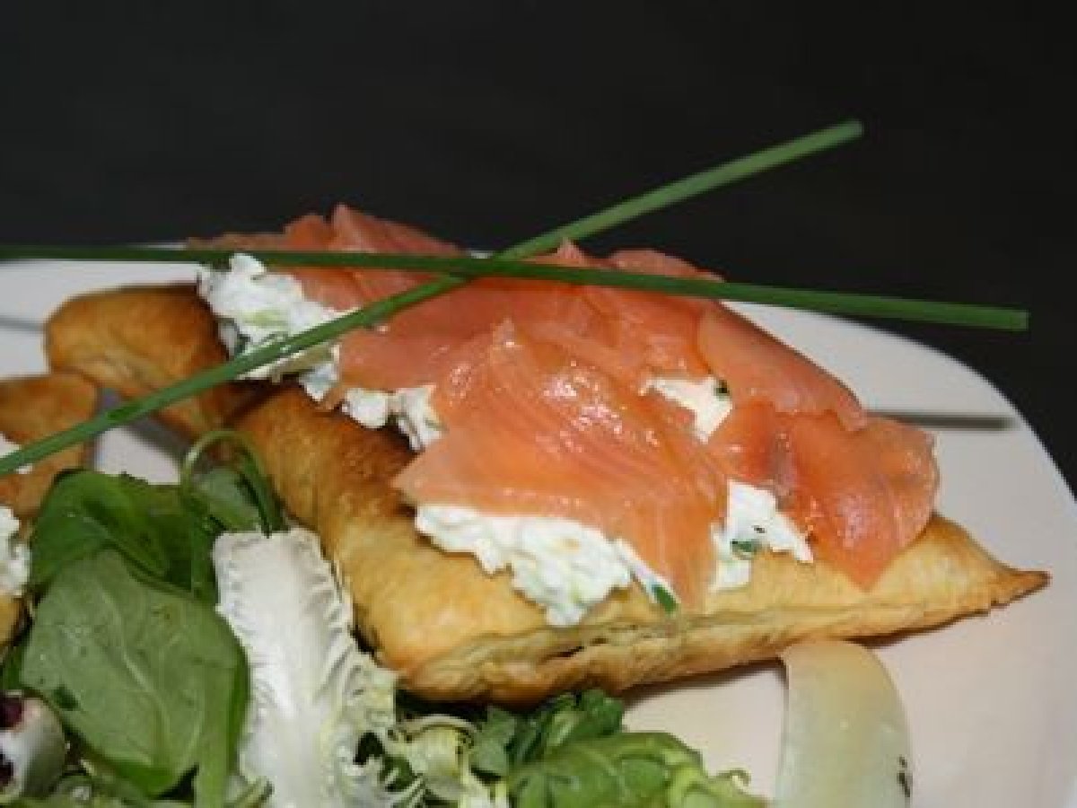 Idée d'entrée gourmande pour les fêtes! Le bon goût du saumon fumé, avec un croustillant de pâte feuilletée et la fraîcheur du fromage frais.