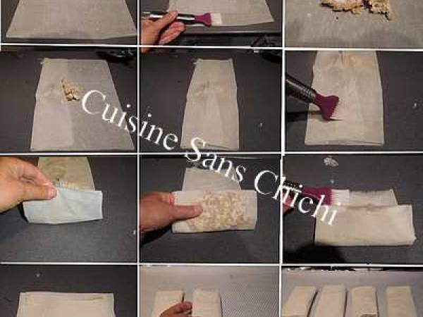 Feuilletés de pâte filo au miel et fromage de chèvre.