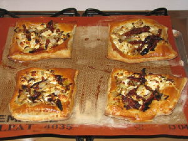 Feuilletés tomates, oignons et féta votez maintenant PrécédentSuivant Entréemoyen30 min503 Kcal Envoyer cette recette à un ami Imprimer cette page Poser une question à l'auteur Publier votre photo de cette recette Ingrédients 4 1 oignon 200 g de fêta Des tomates séchées et conservées dans l'huile 1 oeuf 25 g de pignons de pin 2 cuillères à café rases de thym frais Poivre 1 pâte feuilletée Coût estimé: 5.88Euros€ (1.47€/part)