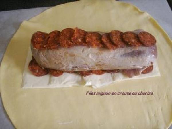 Filet mignon en croute au chorizo PrécédentSuivant Entréefacile1 h 5 m Envoyer cette recette à un ami Imprimer cette page Poser une question à l'auteur Publier votre photo de cette recette Voici un petit plat toute simple que les gourmands pourront bien aimer. Ingrédients 6 1 filet mignon de veau ou de porc du fromage en toastinette de la vache qui rit (ou de gruyere râpé) des tranches fines de chorizo fort une pâte feuilleté (si le filet est vraiment très gros, prendre deux pâtes)