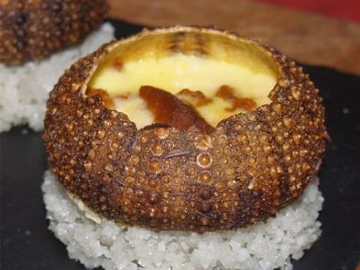 Flan d'oursins et oursins crus PrécédentSuivant Entréefacile22 min Envoyer cette recette à un ami Imprimer cette page Poser une question à l'auteur Publier votre photo de cette recette Ingrédients 4 Pour le flan de langues d'oursins : 1 oeuf 2 cuillères à soupe de crème fraîche 2 cuillères à soupe de lait 1 pincée de safran poivre 1 cuillère à soupe d'eau prélevé dans les oursins et passée au chinois Pour le faux triskel d'oursins crus : 1 tranche de citron des langues de corail d'oursins un peu de coriande fraîche ciselée Coût estimé: 1.26Euros€ (0.31€/part)