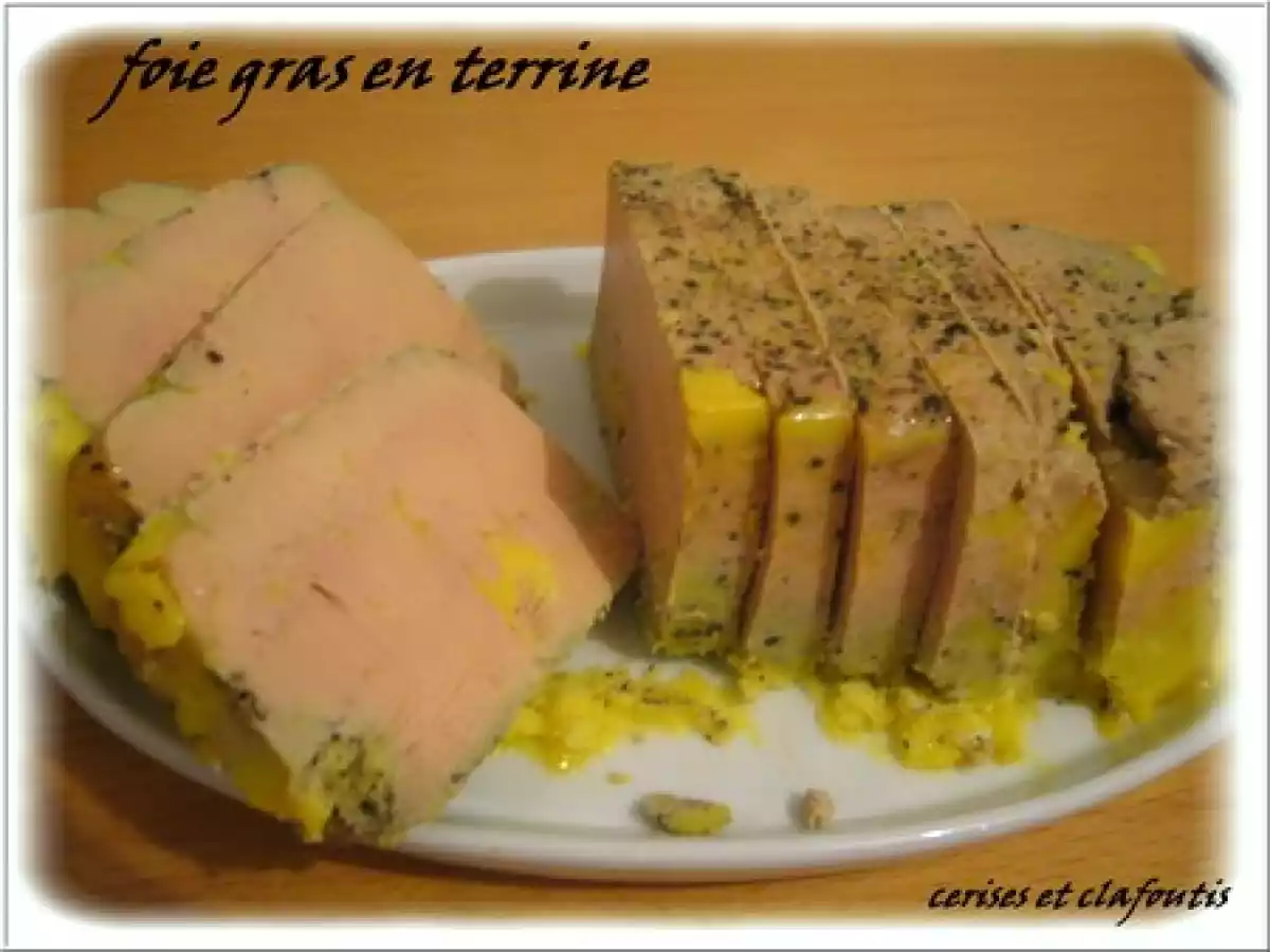 Foie gras mi-cuit en terrine PrécédentSuivant Entréefacile1 heure262 Kcal Envoyer cette recette à un ami Imprimer cette page Poser une question à l'auteur Publier votre photo de cette recette Un délice ! Ingrédients 8 1 foie gras (cru de 500 g environ) 1 g de poivre 7 g de fleur de sel quelques râpures de noix de muscade 2 cuillères à soupe de vin blanc liquoreux ( facultatif) 1 pincée de sucre cristallisé Coût estimé: 20.38Euros€ (2.55€/part)