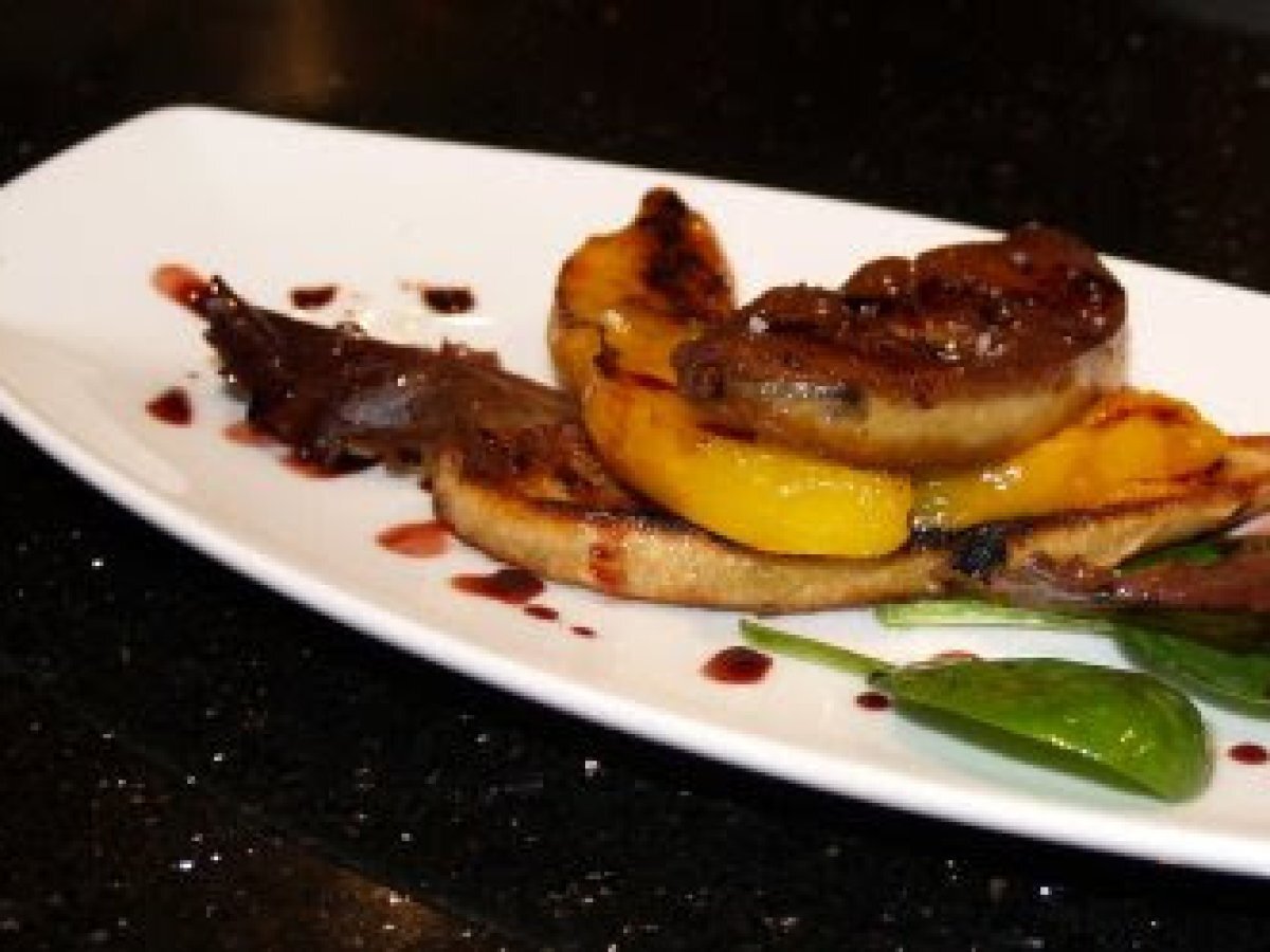 Une entrée très classique avec une touche exotique:" foie gras poêlé sur pain perdu à la mangue". Pour le foie gras que l' on passe à la poêle il doit être hyper frais sinon il fond dans la poêle. Donc le truc: soit vous habitez dans le Gers et vous vous servez direct chez l' exploitant soit vous achetez votre foie gras congelé (en plus ça facilite la vie!).