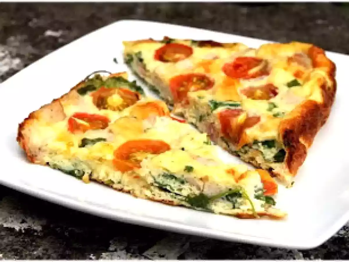 Frittata aux tomates cerises, roquette et jambon Entréemoyen50 min Envoyer cette recette à un ami Imprimer cette page Poser une question à l'auteur Publier votre photo de cette recette Ingrédients 4 6 oeufs 1/2 tasse de crème fraîche 1/3 tasse de parmesan râpé sel et poivre du moulin 100 g de feuilles de roquette 100 g de jambon blanc ou de jambon de dinde fumé, en petits dés 250 g de tomates cerises coupées en moitiés beurre ou margarine pour le plat 1 tasse (1 cup) = un volume de 240 ml environ une quantité équivalente de jeunes pousses d'épinards, cresson.