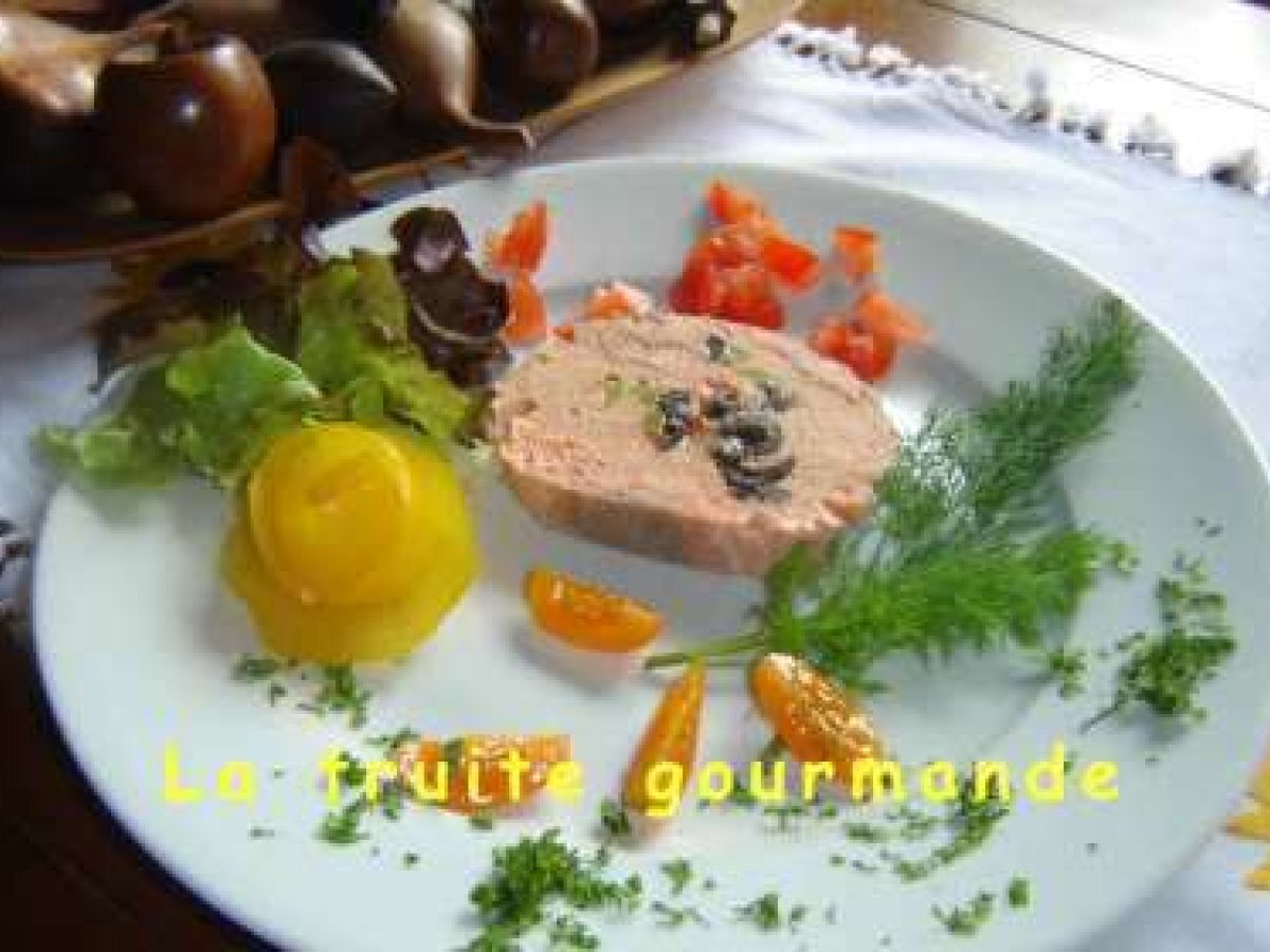 Galantine de truite à la basquaise Entréemoyen55 min Envoyer cette recette à un ami Imprimer cette page Poser une question à l'auteur Publier votre photo de cette recette Ingrédients 6 1,200 kg de filet de truite ½ poivron vert, ½ poivron rouge 100g olives noires dénoyautées 2 gousses daïl 1 oignons 1 uf 20 cl de crème fraîche épaisse 1 pincée de safran sel poivre, poivre concassé, laurier, thym piment despelette