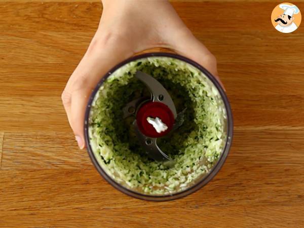 Laver les courgettes puis les couper grossièrement. Hacher ensuite les courgettes dans un hachoir (ou les rapper).