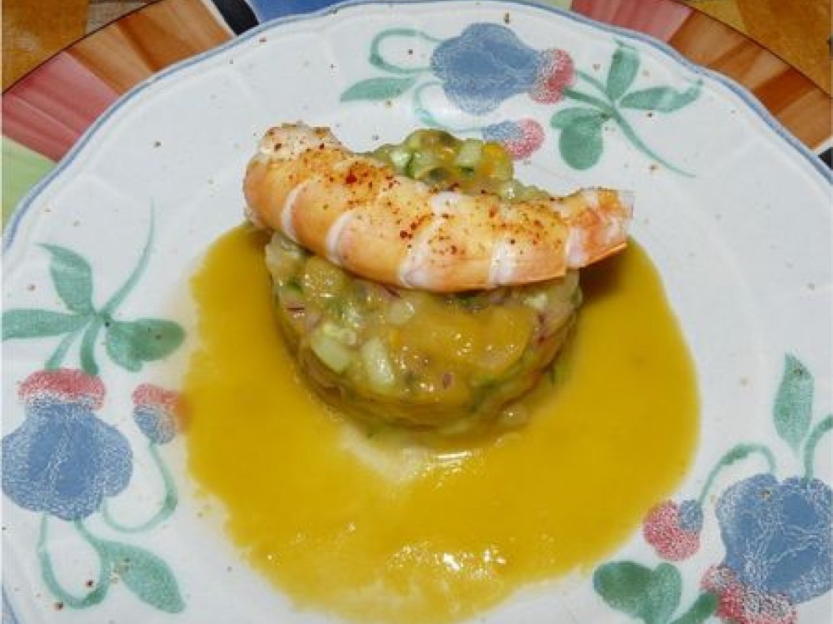 Gambas grillées sur riviéra mangue passion votez maintenant Entréefacile12 min Envoyer cette recette à un ami Imprimer cette page Poser une question à l'auteur Publier votre photo de cette recette Ingrédients 4 gambas cuites 1 mangue bien mure le zeste d'1/4 d'orange 1 fruit de la passion 1/2 concombre les 2/3 d'un oignon rouge un filet d'huile d'olive du sel et du poivre piment d'espelette