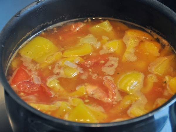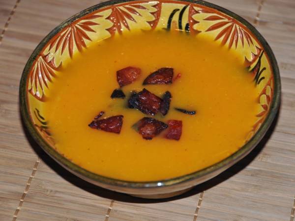 Par les temps qui courent, on cherche la fraîcheur. Alors ce gaspacho aux poivrons arrive à point nommé ! Je l'ai réalisé avec des poivrons jaunes et en version plus gourmande, je le sers avec des dés de chorizo grillés.