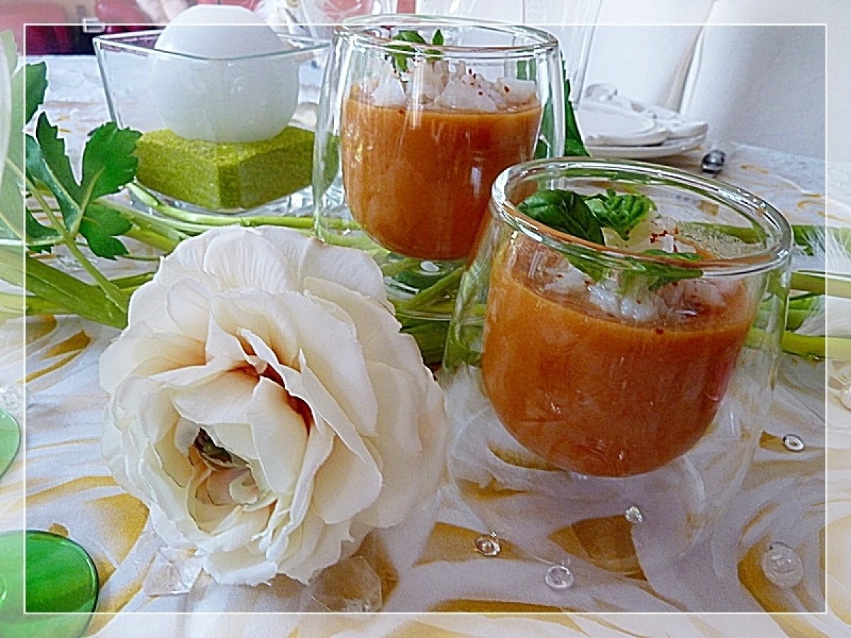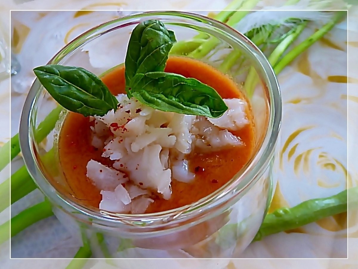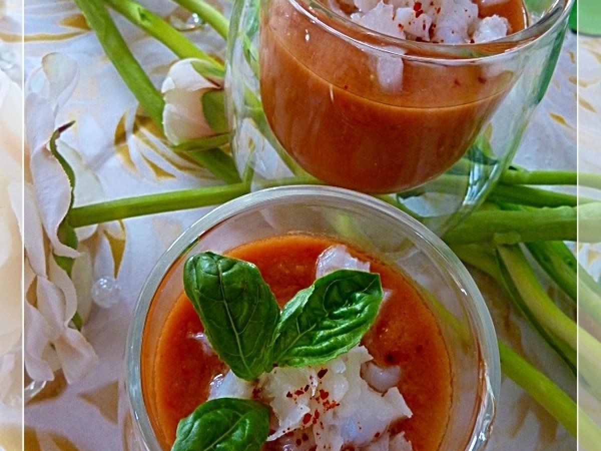 Gaspacho et son dos de cabillaud PrécédentSuivant Entréemoyen45 min Envoyer cette recette à un ami Imprimer cette page Poser une question à l'auteur Publier votre photo de cette recette Ingrédients 4 2 beaux gros poivrons rouges 1 concombre 1 petit oignon 1 gousse d'ail 1 dos de cabillaud 1 cuillère à soupe d'huile d'argan ou olive sel, 2 tours de moulin à épices de poivre