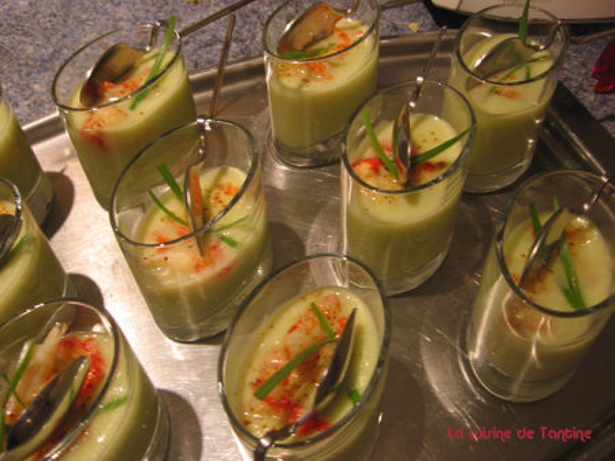 Gaspacho vert aux écrevisses votez maintenant PrécédentSuivant Entréefacile15 min182 Kcal Envoyer cette recette à un ami Imprimer cette page Poser une question à l'auteur Publier votre photo de cette recette Ingrédients 6 2 oignons nouveaux 600 g de concombre 300 g de fenouil 6 cuillères à soupe d'huile d'olive 3 cuillères à soupe de vinaigre de Xérès 200 g d'écrevisses décortiquées. sel et poivre