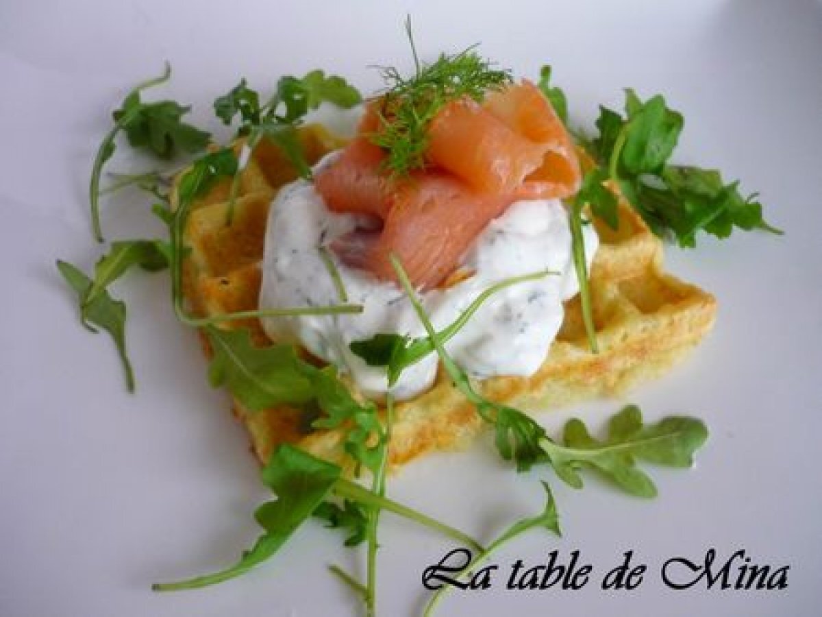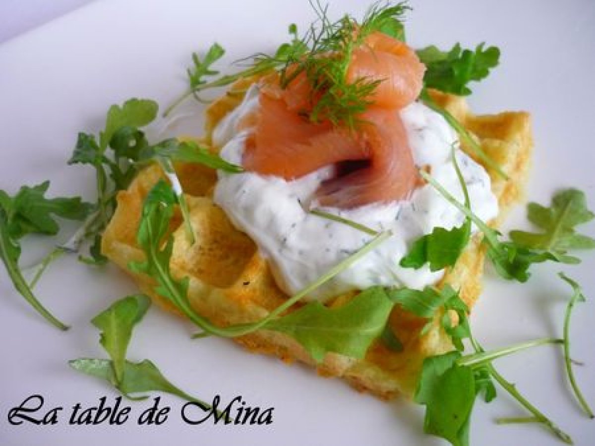 Gaufre de pomme de terre au saumon et à l'aneth votez maintenant PrécédentSuivant Entréefacile25 min689 Kcal Envoyer cette recette à un ami Imprimer cette page Poser une question à l'auteur Publier votre photo de cette recette Ingrédients 4 1 kg de pomme de terre 4 cuillères à soupe de farine 2 jaunes d'oeuf Sel et poivre Fromage blanc Aneth Crème fraîche Saumon Coût estimé: 5.8Euros€ (1.45€/part)