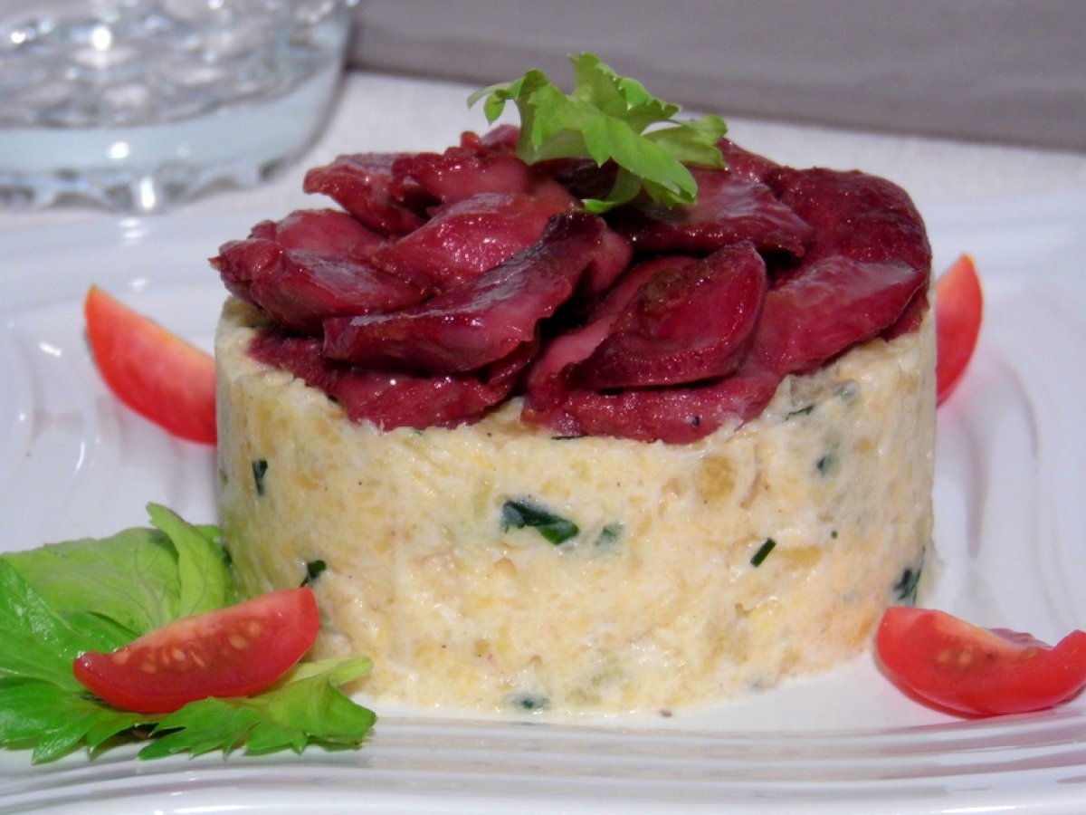 Gésiers confits et purée de rutabaga aux herbes et huile de noix