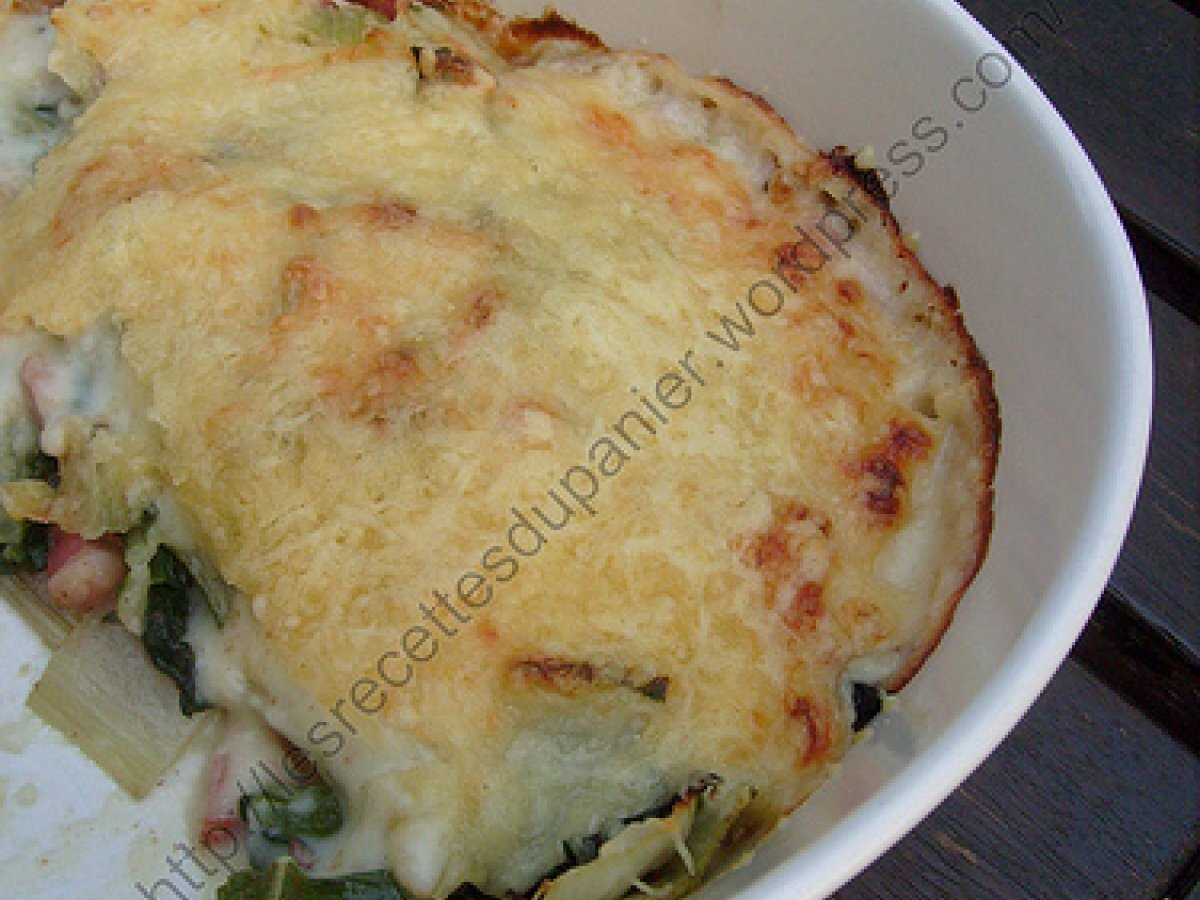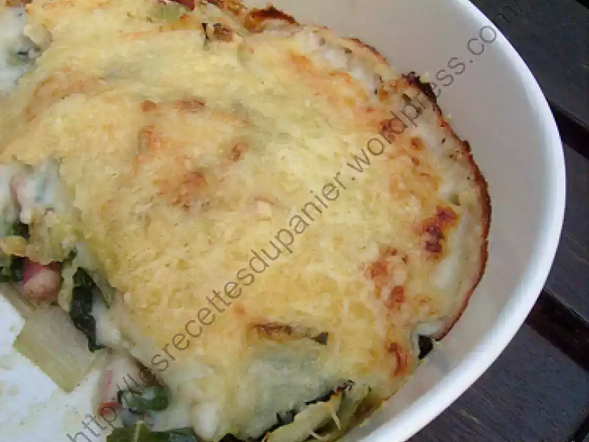 Gratin de blettes à la béchamel. Entréefacile40 min482 Kcal Envoyer cette recette à un ami Imprimer cette page Poser une question à l'auteur Publier votre photo de cette recette Ingrédients 4 500 g de blettes 200 g de lardons 1/2 l de béchamel 150 g de fromage râpé