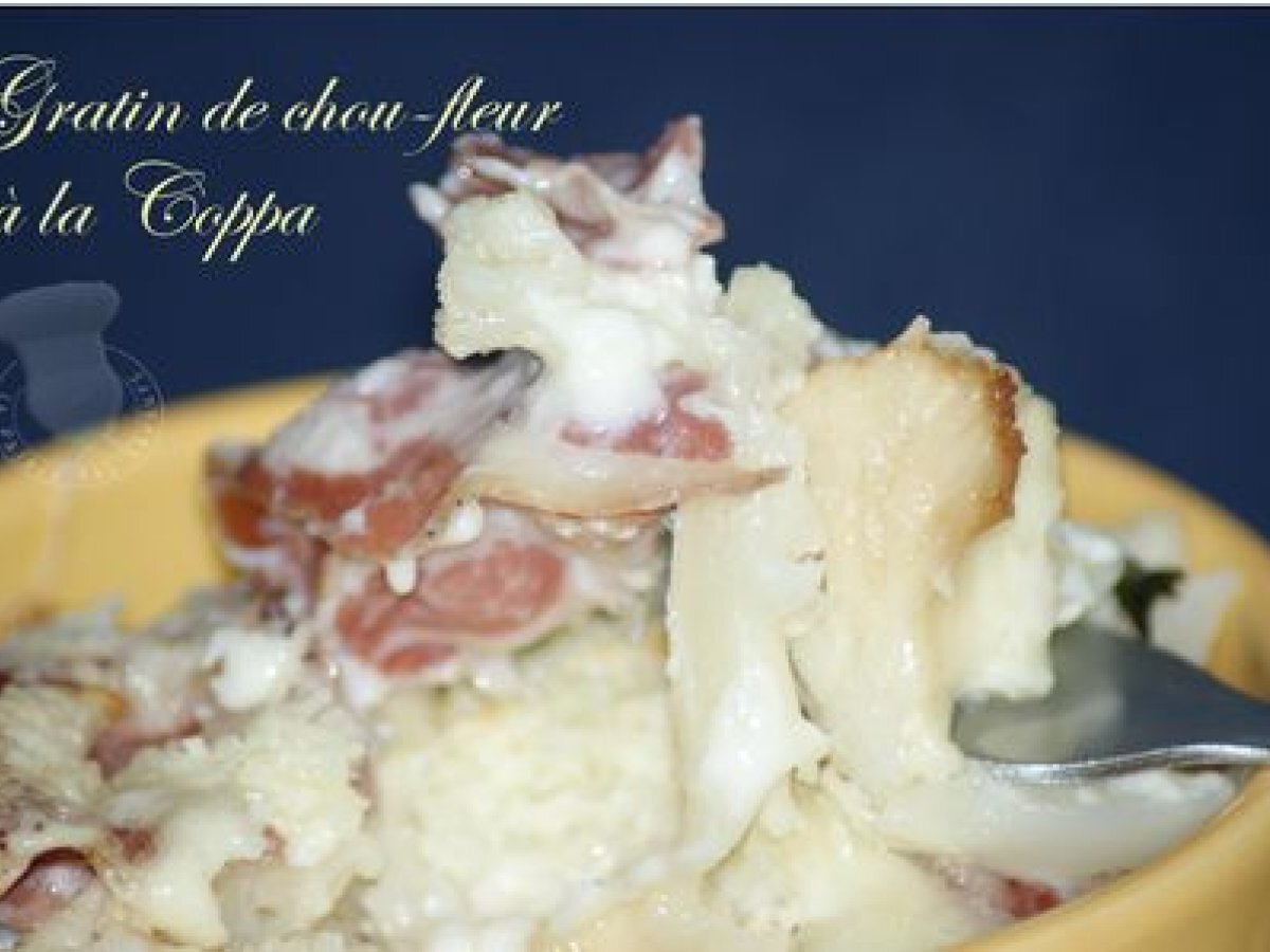 Gratin de chou-fleur à la coppa votez maintenant PrécédentSuivant Entréefacile25 min181 Kcal Envoyer cette recette à un ami Imprimer cette page Poser une question à l'auteur Publier votre photo de cette recette Ingrédients 6 1 chou-fleur 2 cuillères à soupe de maïzena 2 cuillères à soupe de lait 300 ml de lait 2 cuillères à soupe de crème fraîche épaisse 2 tranches de coppa 150 g de Pécorinoorigan frais Coût estimé: 5.69Euros€ (0.95€/part)