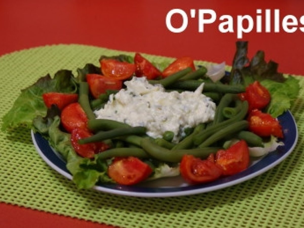 Haricots verts et tomates au basilic et à la menthe votez maintenant Entréefacile30 min Envoyer cette recette à un ami Imprimer cette page Poser une question à l'auteur Publier votre photo de cette recette Ingrédients 3 700 g de haricots verts des tomates 1 oignon 2 gousses d'ail 2 brins de menthe 2 brins de basilic 2 cuillères à soupe d'huile de colza 2 cuillères à soupe de vinaigre de cidre un fromage onctueux de 180 g genre « Saint Félicien » sel et poivre