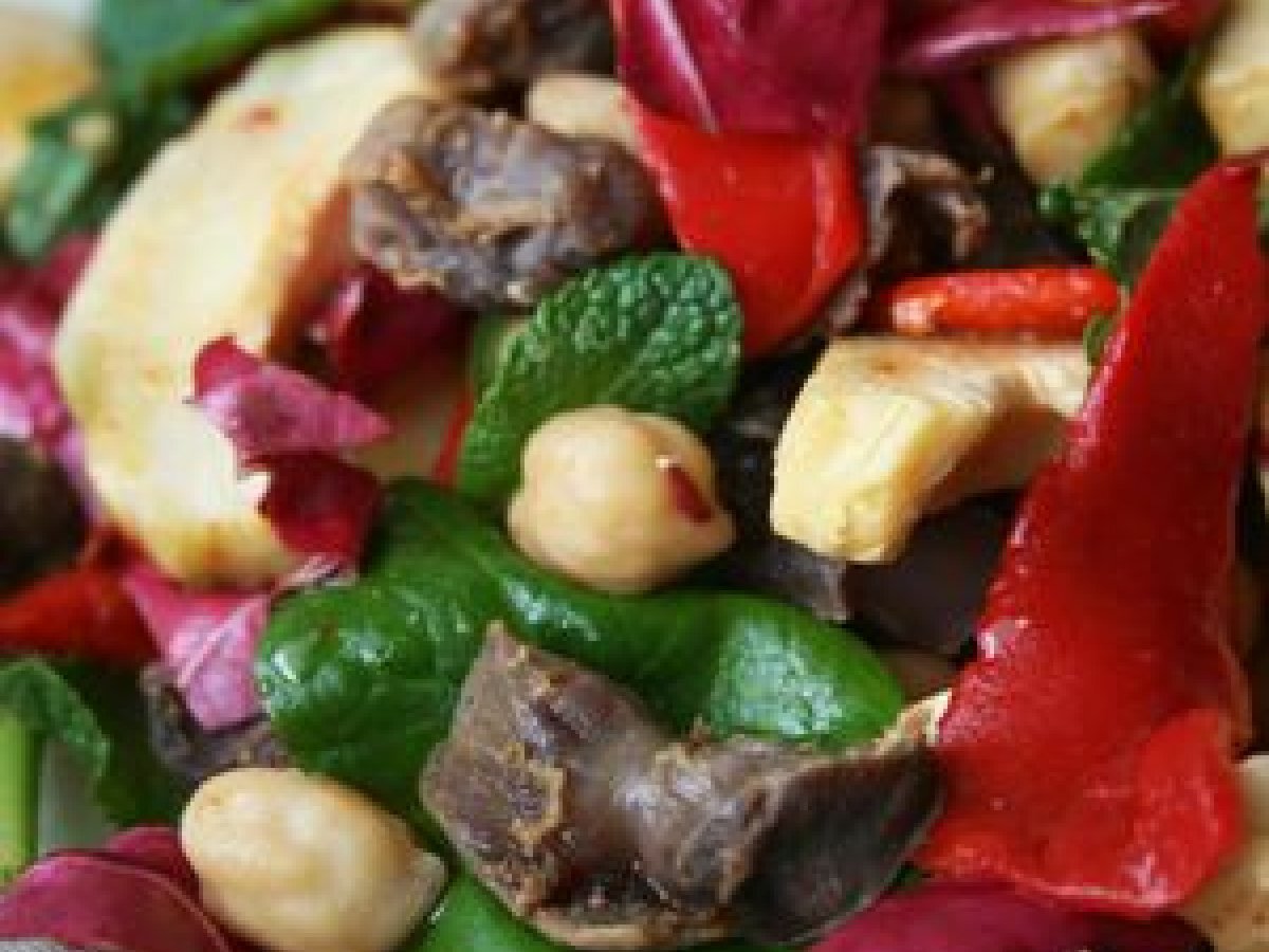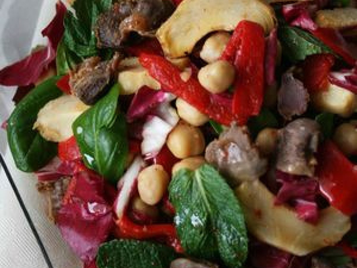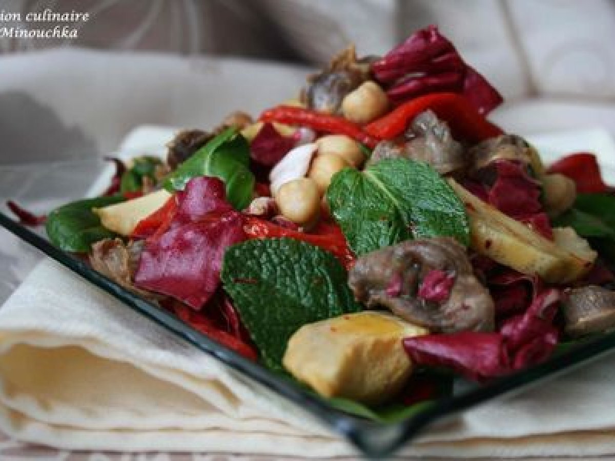 Jardinière de pois-chiche aux gésiers confits (maison) aux 4 piments votez maintenant PrécédentSuivant Entréefacile3 h 20 m Envoyer cette recette à un ami Imprimer cette page Poser une question à l'auteur Publier votre photo de cette recette Ingrédients 4 Pour le gésier confit : 250 g de gésiers de volaille 1 piment NIORA 1/2 cuillère à café de piment d'Espelette 1/2 cuillère à café de Pimento 2 pincées de piment de Cayenne 2 gousses d'ail 2 feuilles de laurier Bain d'huile : moitié huile d'olive et moitié huile de tournesol Gros sel Pour la jardinière : 200 de pois-chiche trempés dans de l'eau pendant 10 heures 1 boîte d'artichaud 4 poivrons rouges grillés et confits 1 salade Trévise Quelques pousses d'épinard Quelques feuilles de menthe Pour la vinaigrette : 4 cuillères à soupe d'huile d'olive 2 cuillères à soupe de vinaigre balasamique 1/4 cuillère à café de moutarde 1/4 cuillère à café de piment d'Espelette 1/4 cuillère à café de Pimento Poivre du moulin Sel