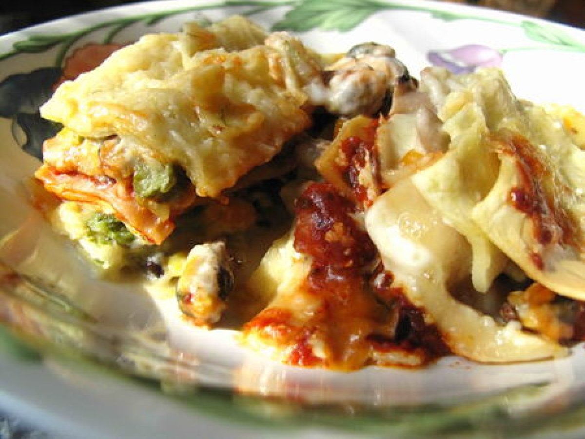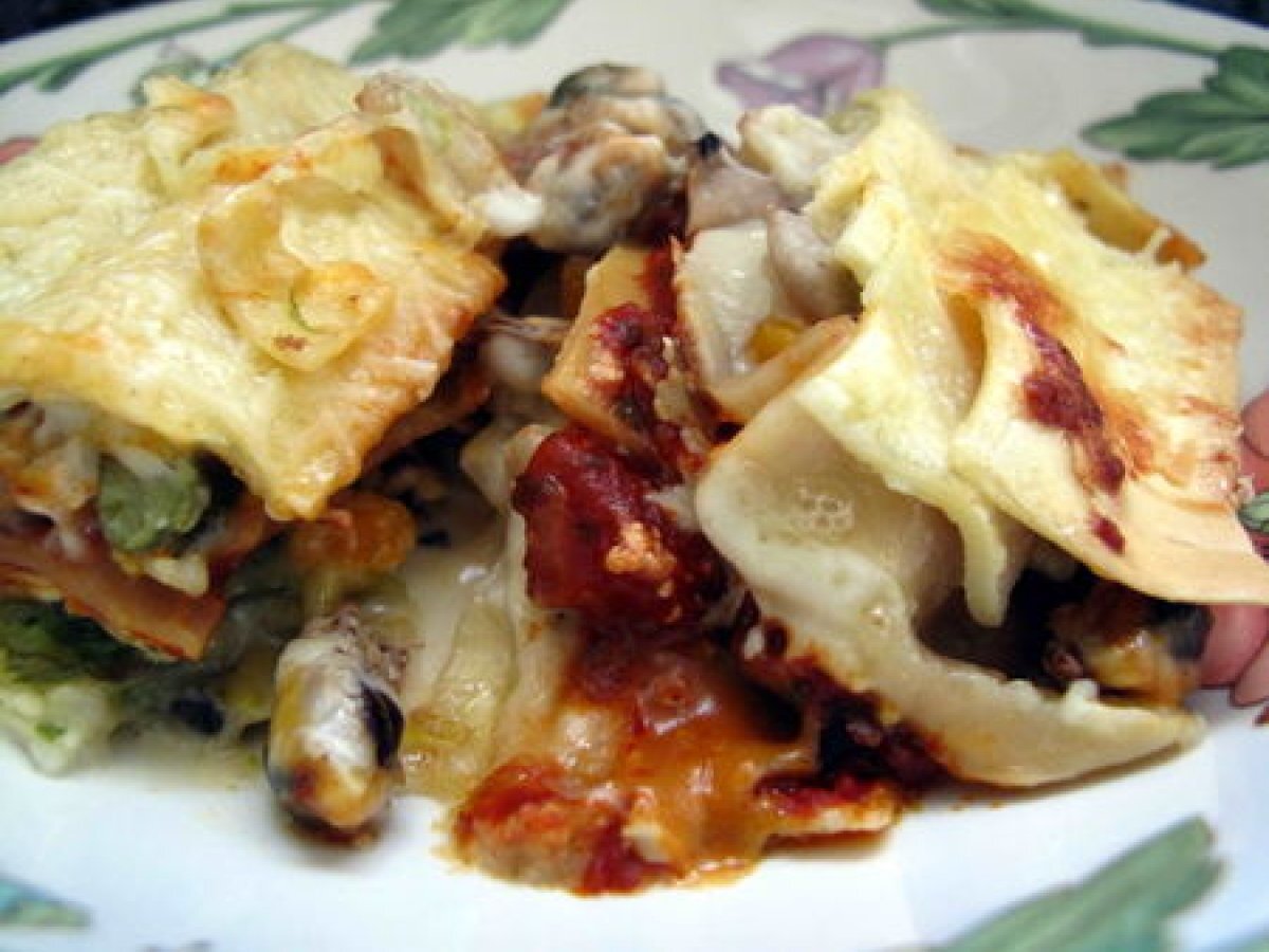 Lasagnes aux fruits de mer PrécédentSuivant Entréefacile55 min Envoyer cette recette à un ami Imprimer cette page Poser une question à l'auteur Publier votre photo de cette recette Ingrédients 4 8 champignons de Paris 1 cuillère à soupe huile végétale neutre 1 blanc de poireau 1 branche de céleri 1 gros oignon botte 1 carotte 1 verre de Noailly-Prat 1 sachet de 500 g de mélange 3 fruits de mer Picard 2 cuillères à soupe huile végétale neutre 1 énorme cuillère à soupe farine environ 1/3 l lait environ 3/4 d'un gros bocal de 420 g de sauce tomate aux cèpes une dizaine de feuilles de lasagne fraîches 20 cl crème légère (12%) quantité suffisante sel poivre parmesan râpé bouillon de poisson en poudre
