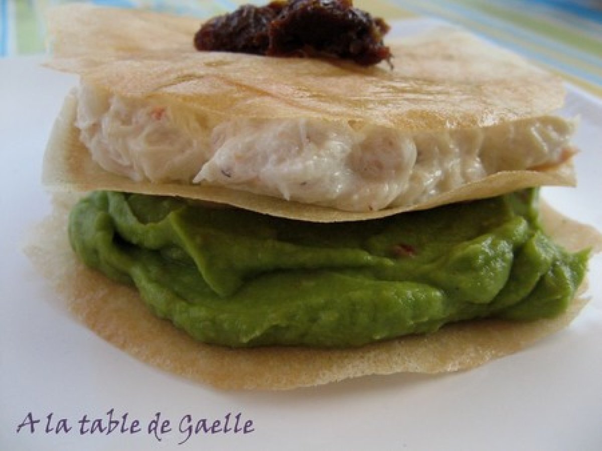 Le sucré devient salé : millefeuille croustillant à l'avocat et au crabe