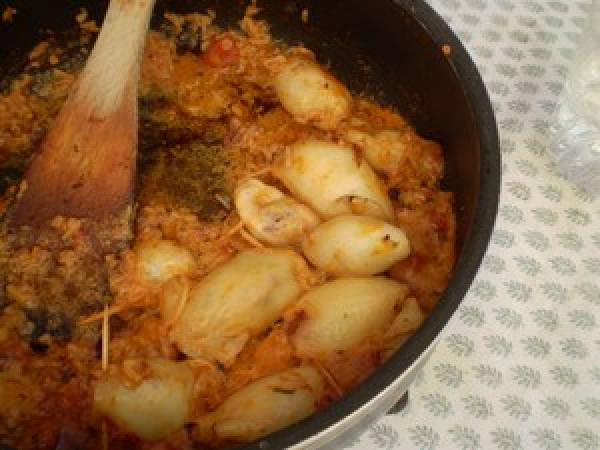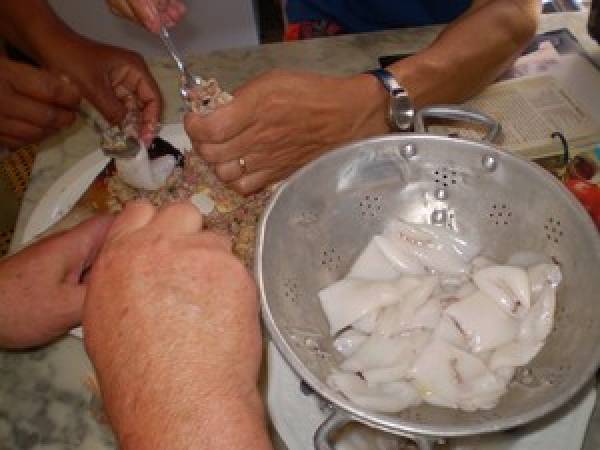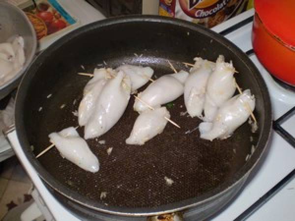 Les encornets farcis votez maintenant PrécédentSuivant Entréefacile1 h 5 m Envoyer cette recette à un ami Imprimer cette page Poser une question à l'auteur Publier votre photo de cette recette Un véritable plaisir. Ingrédients 6 8 à 10 encornets 150 g de lard salé 1 verre de riz 6 oignons moyens 3 gousses d'ail 1 cuillère à café de persil haché 1 cuillère à café de thym effeuillé un peu d'écorce d'orange 1 bouquet garni 3 verres de vin blanc 1/2 verre de cognac 3 piments d'oiseaux 1 boîte de concentré de tomate 1 oeuf Huile d'olive, sel et poivre des bâtonnets en bois