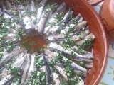 Les meilleures tapas du monde : les boquerones au jamon iberico. votez maintenant Entréefacile12 min Envoyer cette recette à un ami Imprimer cette page Poser une question à l'auteur Publier votre photo de cette recette Ingrédients 4 une boite de boquerones au naturel une tranche épaisse (ou des chutes) de Jamon Iberico de qualité une botte de ciboulette de la bonne huile d’olive du citron du poivre