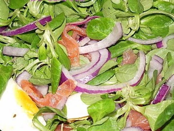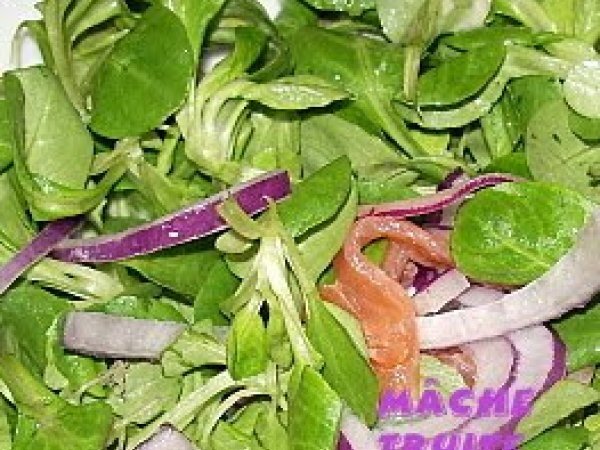 Mâche à la truite fumée PrécédentSuivant Entréefacile30 min157 Kcal Envoyer cette recette à un ami Imprimer cette page Poser une question à l'auteur Publier votre photo de cette recette Ingrédients 4 200 g de mâche 200 g de filet de truite fumée 2 oeufs 2 oignons rouges 1 cuillère à soupe de vinaigre balsamique blanc 1 cuillère à soupe de vinaigrette allégée