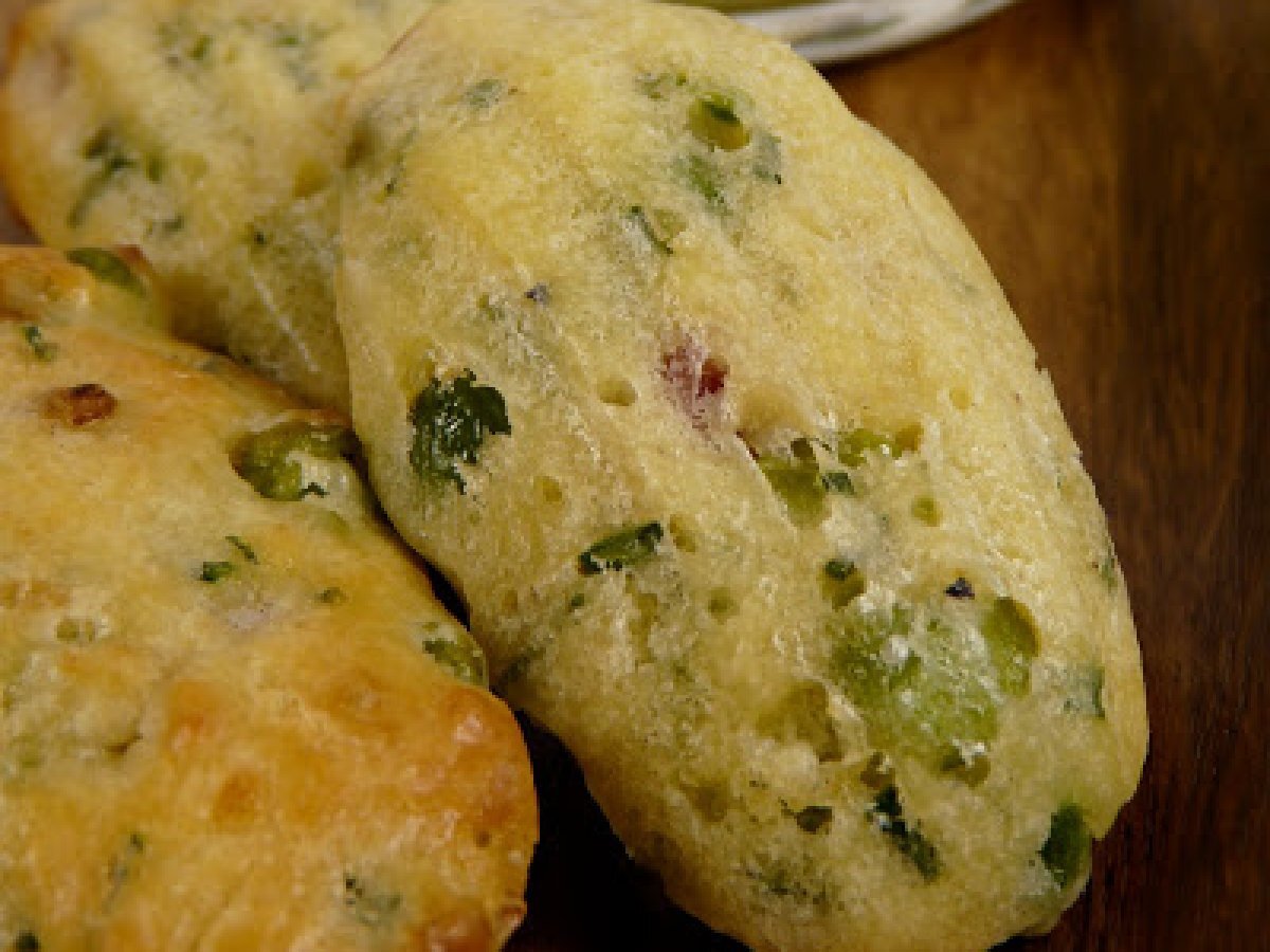Madeleines aux petits pois, lardons pour accompagner une soupe froide aux courgettes