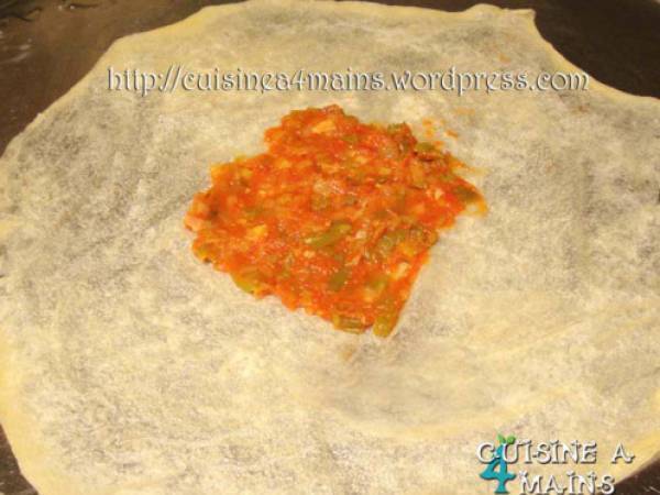 Mahjouba party Entréefacile30 min194 Kcal Envoyer cette recette à un ami Imprimer cette page Poser une question à l'auteur Publier votre photo de cette recette Ingrédients 6 Pâte: 500 g de semoule fine 1 cuillère à café de sel eau Huile pour le façonnage et la cuisson Farce: 3 gros oignons ou une botte d’oignons verts 3 gousses d’ail 5 grosses tomates 2 poivrons verts 1 piment vert ou harissa 1 cuillère à soupe de concentré de tomates huile ou sel poivre et épices au goût Coût estimé: 3.71Euros€ (0.62€/part)