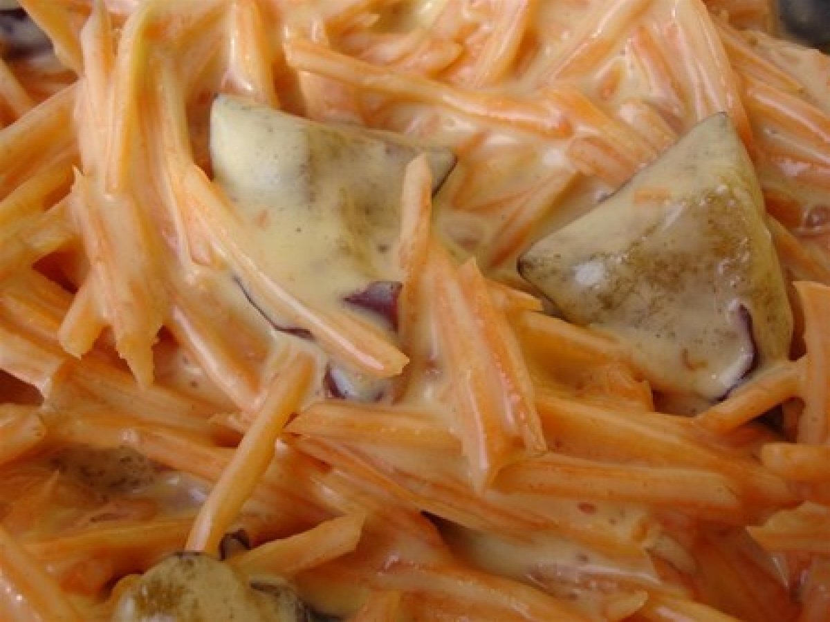 Mayonnaise végétalienne au safran, carottes râpées aux quetsches