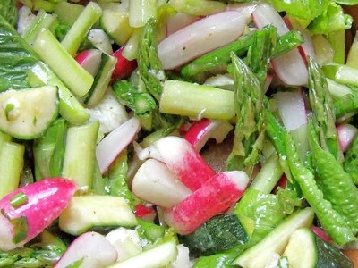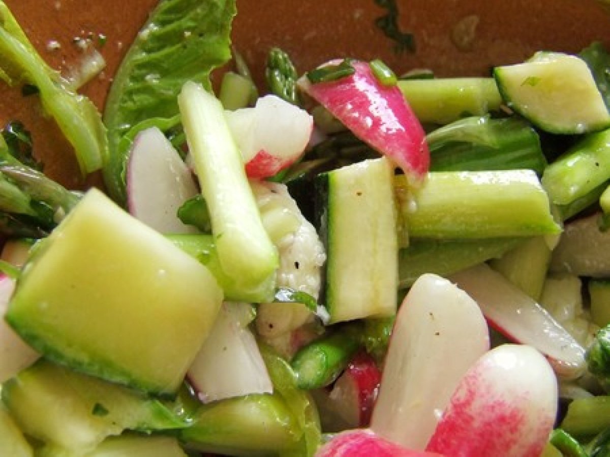 Méli-mélo croquant de saison (asperges, radis, courgettes, oignon...)