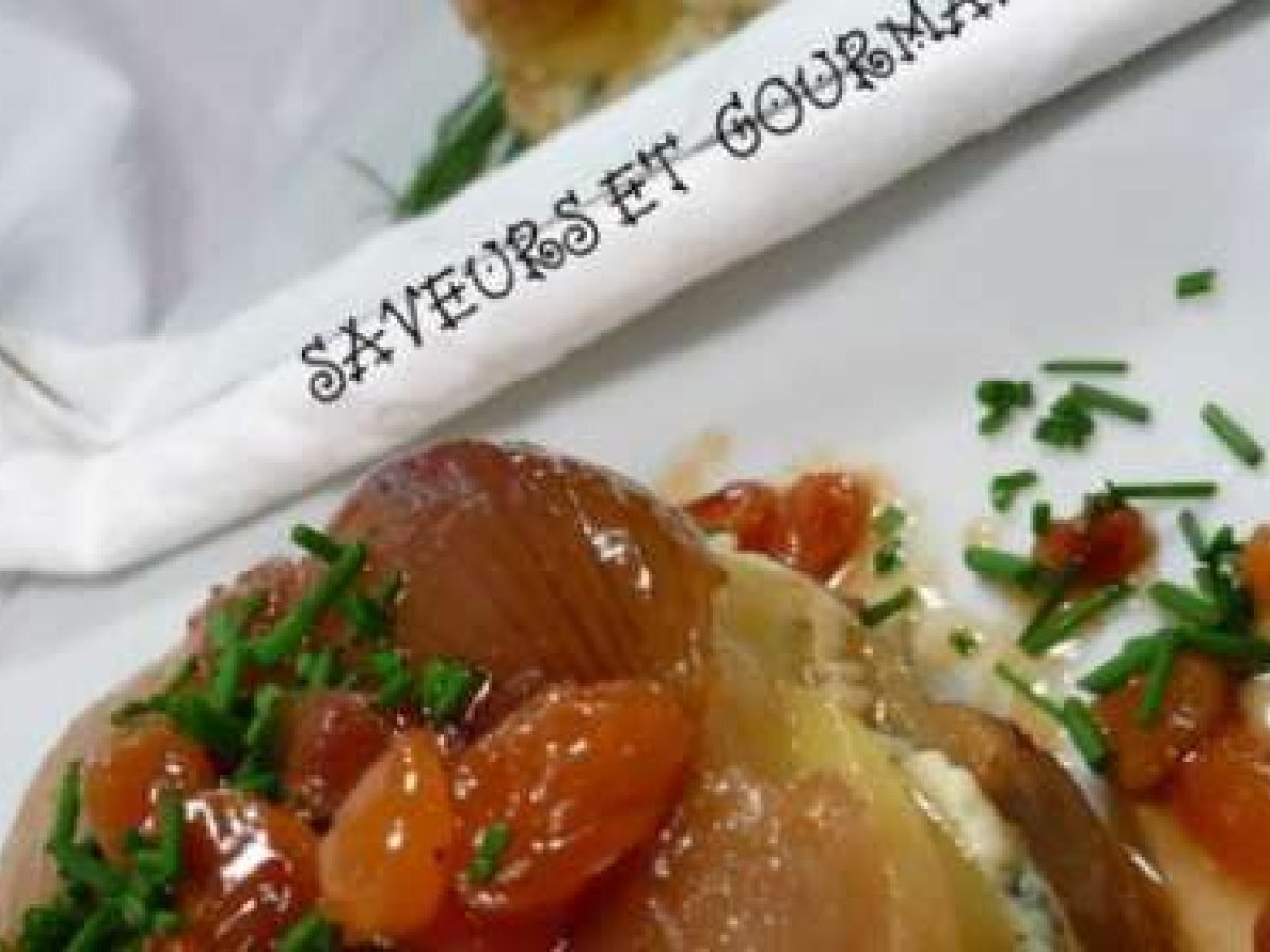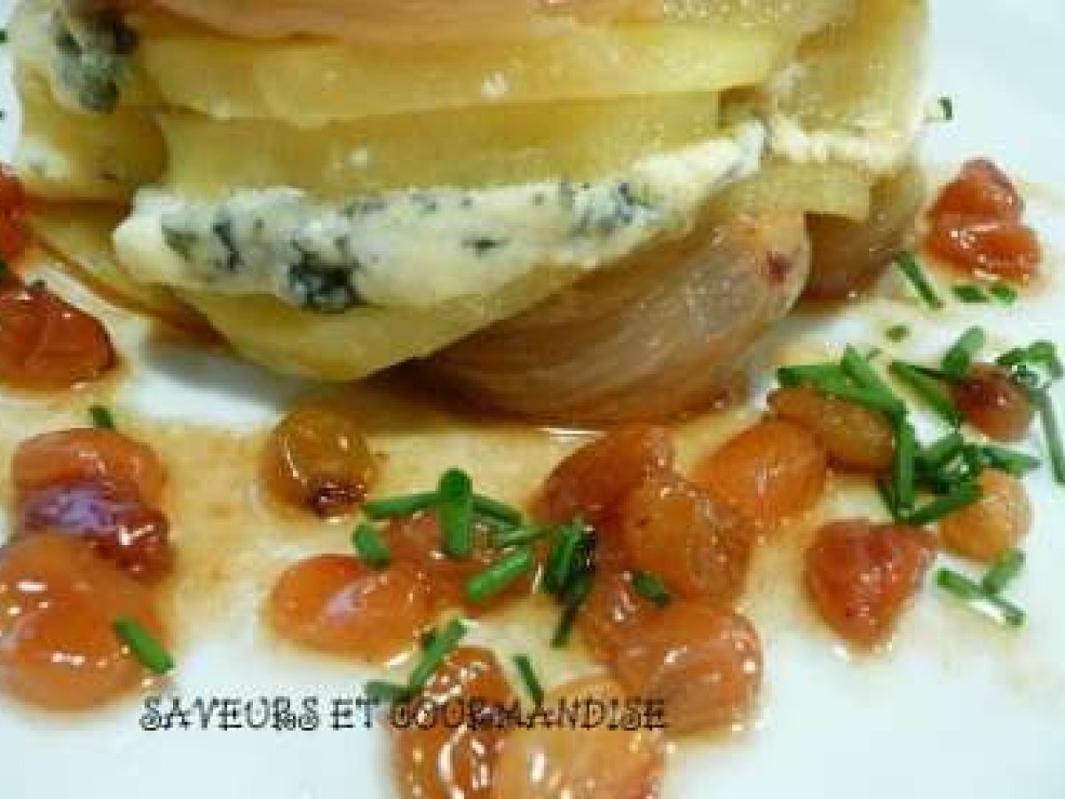 Mille-feuille d'échalotes PrécédentSuivant Entréemoyen45 min Envoyer cette recette à un ami Imprimer cette page Poser une question à l'auteur Publier votre photo de cette recette Ingrédients 4 2 pommes de terre 300 gr déchalotes roses 175 gr de roquefort 30 gr de beurre 1 cuillère à soupe de raisins secs. 1 cuillère à soupe de sucre.