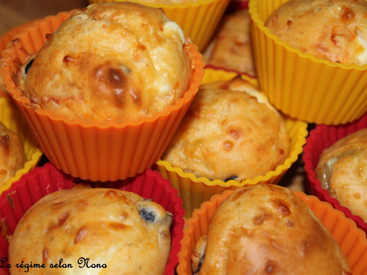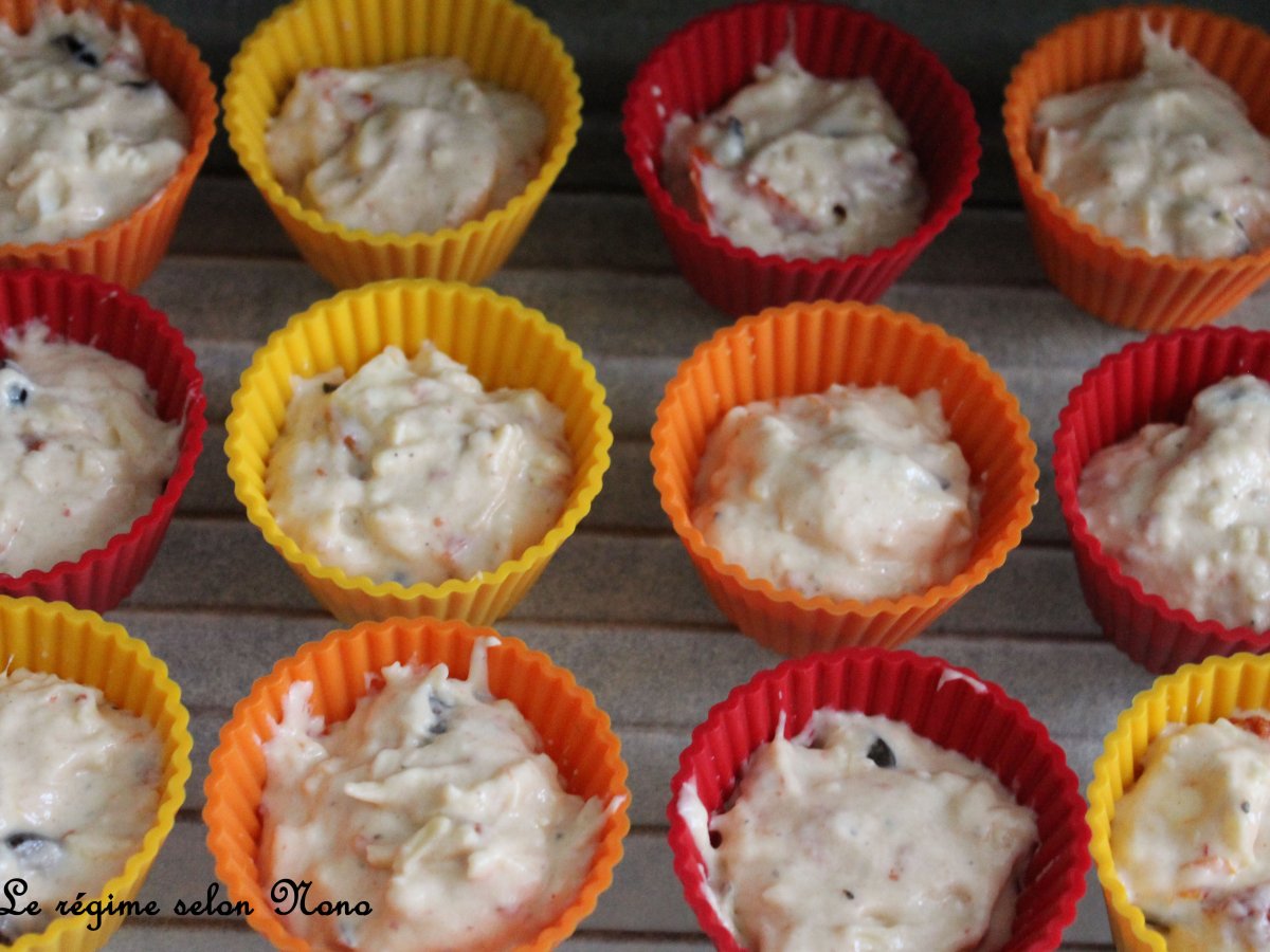 Mini-cupcakes à la tomate séchée, féta, olives