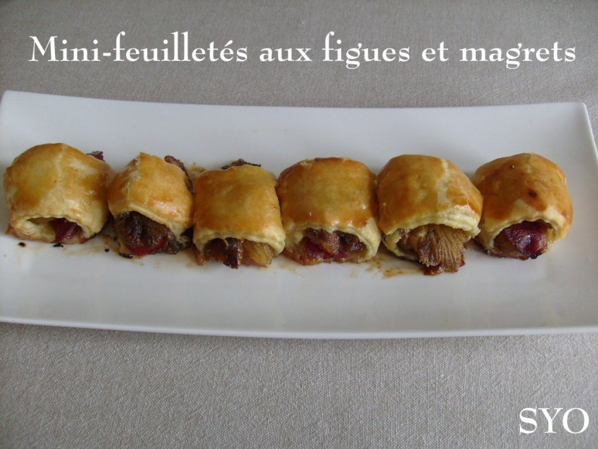 Mini-feuilletés aux figues et magrets de canard Entréefacile20 min Envoyer cette recette à un ami Imprimer cette page Poser une question à l'auteur Publier votre photo de cette recette Ingrédients 4 une pâte feuilletée 1 sachet de magrets de canard fumés quelques figues. Un jaune d?oeuf mouillé de quelques gouttes d'eau.