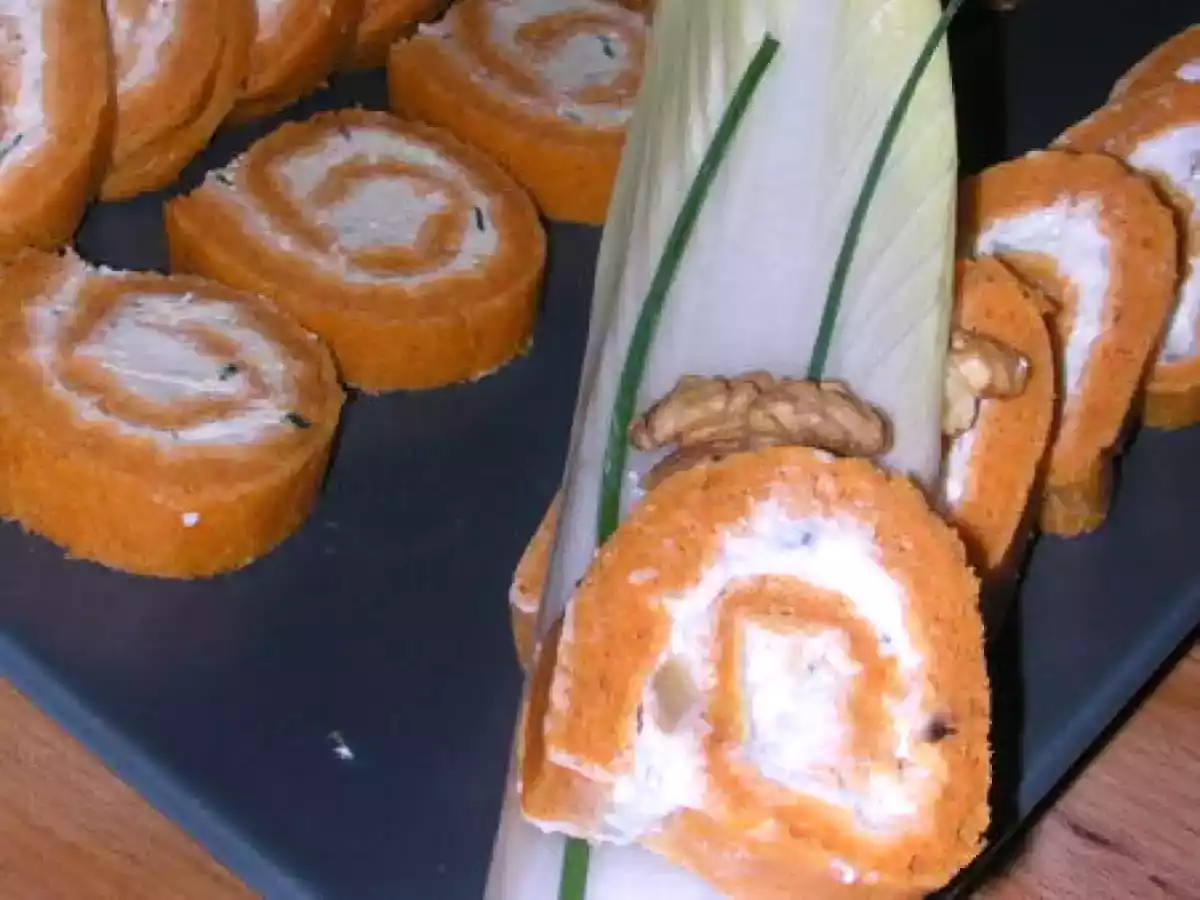 Mini roulés salés aux deux fromages PrécédentSuivant Entréefacile23 min Envoyer cette recette à un ami Imprimer cette page Poser une question à l'auteur Publier votre photo de cette recette Ingrédients 4 15 g de farine 25 g de maïzena 3 oeufs 1 cuillère à café de levure 70 g de beurre 1 cuillère à café de parika 1 pointe de couteau de piment d'espelette 100 g de fromage ail et fines herbes 1 grosse cuillère à soupe de fromage blanc de la ciboulette ciselée 100 g de bleu crémeux 2 cuillères à soupe de fromage blancs des noix concassées