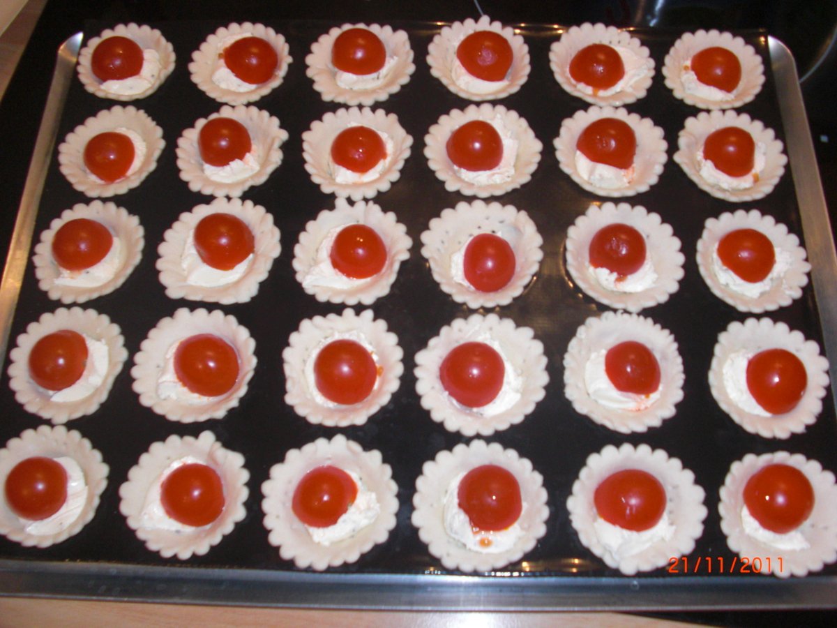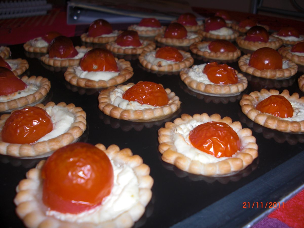 Mini tartelettes tomates cerise / boursin PrécédentSuivant Entréefacile20 min388 Kcal Envoyer cette recette à un ami Imprimer cette page Poser une question à l'auteur Publier votre photo de cette recette Ingrédients 6 2 pâtes feuilletées fromage à tartiner (type boursin cuisine) tomates cerise Coût estimé: 2.25Euros€ (0.37€/part)