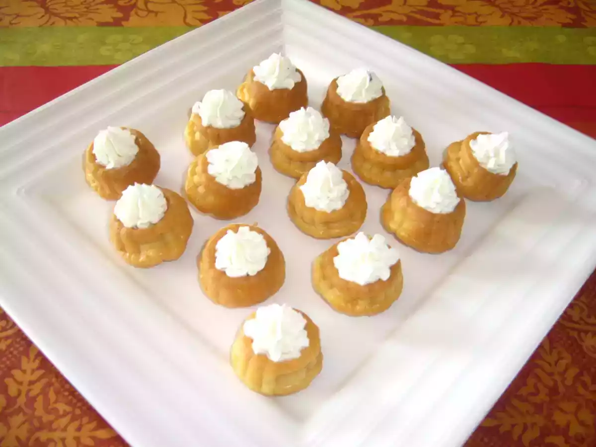 Dès que les minis savarins sont froids, les garnir de crème de Boursin avec la poche à douilles munie de la petite douille cannelée.