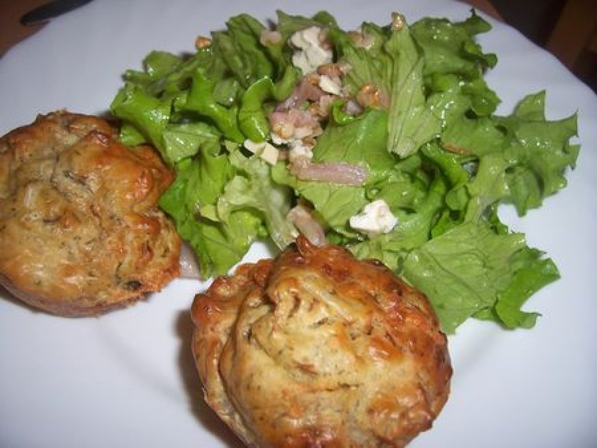 Essayez! C'est absolument délicieux!! Le surimi chaud est vraiment bon et le bleu agrémente parfaitement ces muffins. Le must du must, c'est la salade assaisonnée avec huile-vinaigre et avec des noix, du Bleu d'Auvergne et de l'échalote... Miam miam miam!!!